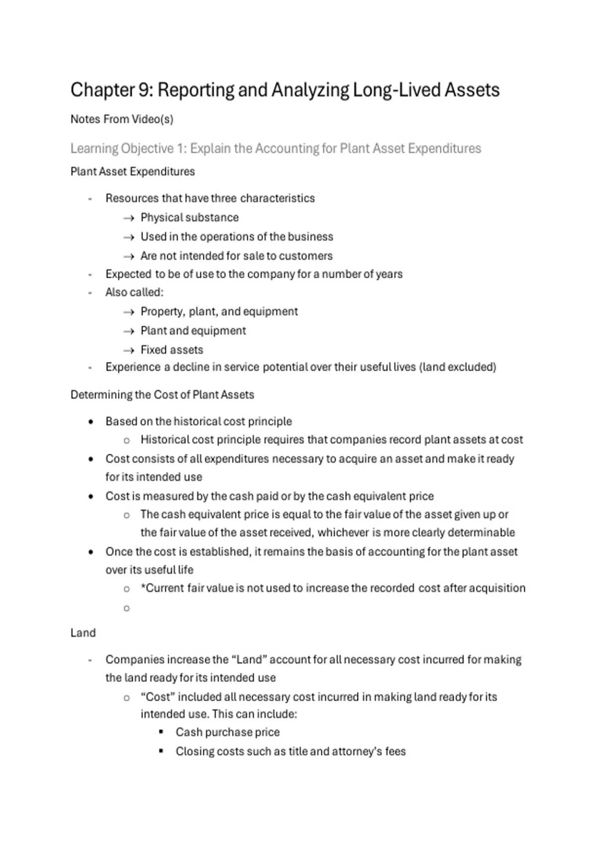 Chapter 9: Reporting and Analyzing Long-Lived Assets