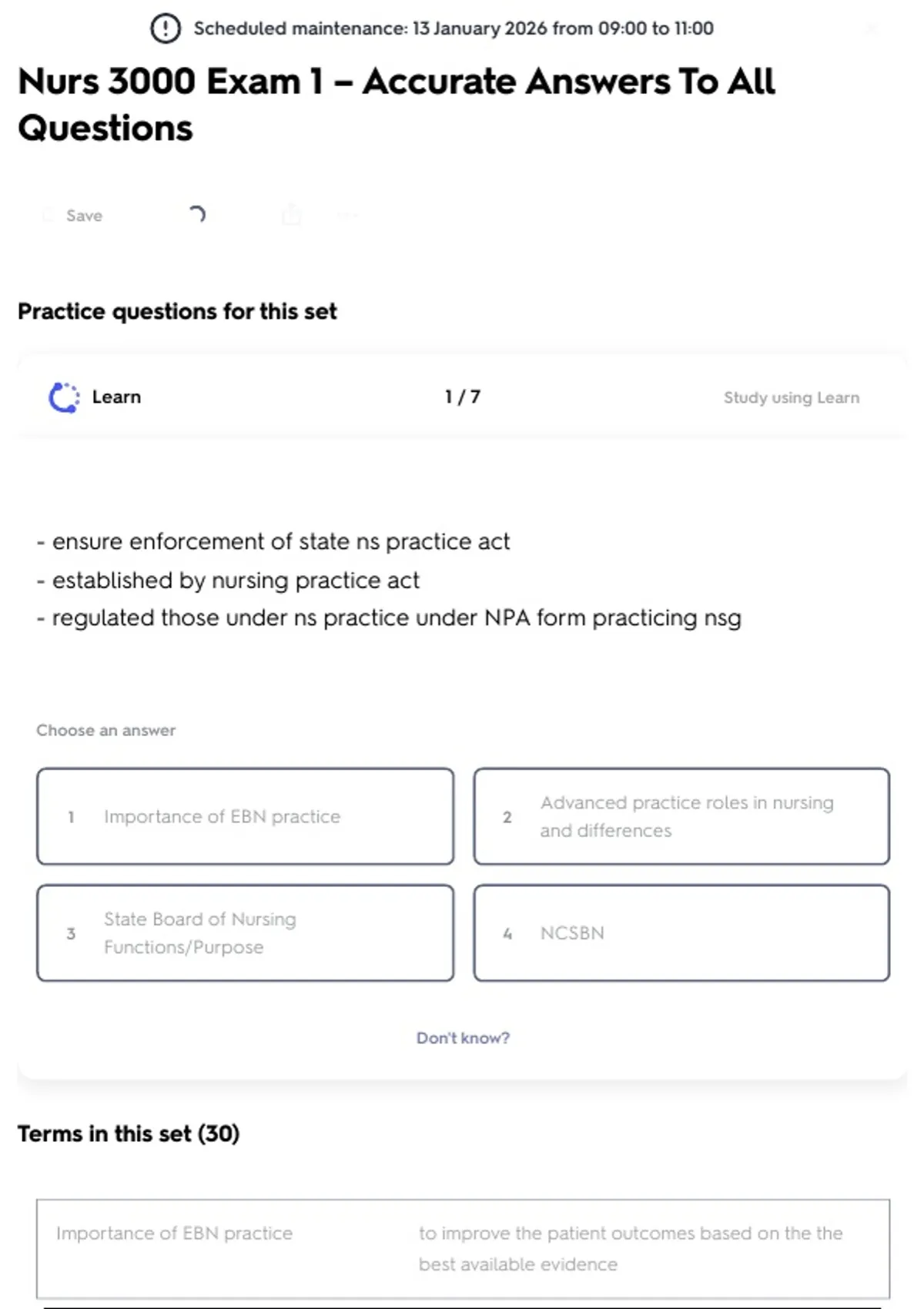 Nurs 3000 Exam 1 – Accurate Answers To All