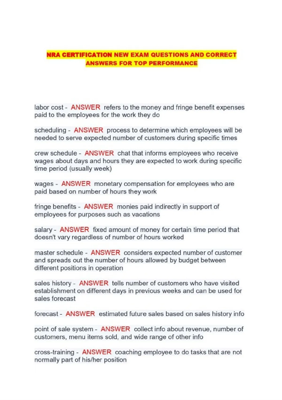 NRA PACKAGED EXAMS; FULL STUDY PACK WITH VERIFIED QUESTIONS AND ANSWERS TO HELP YOU PASS WITH CONFIDENCE