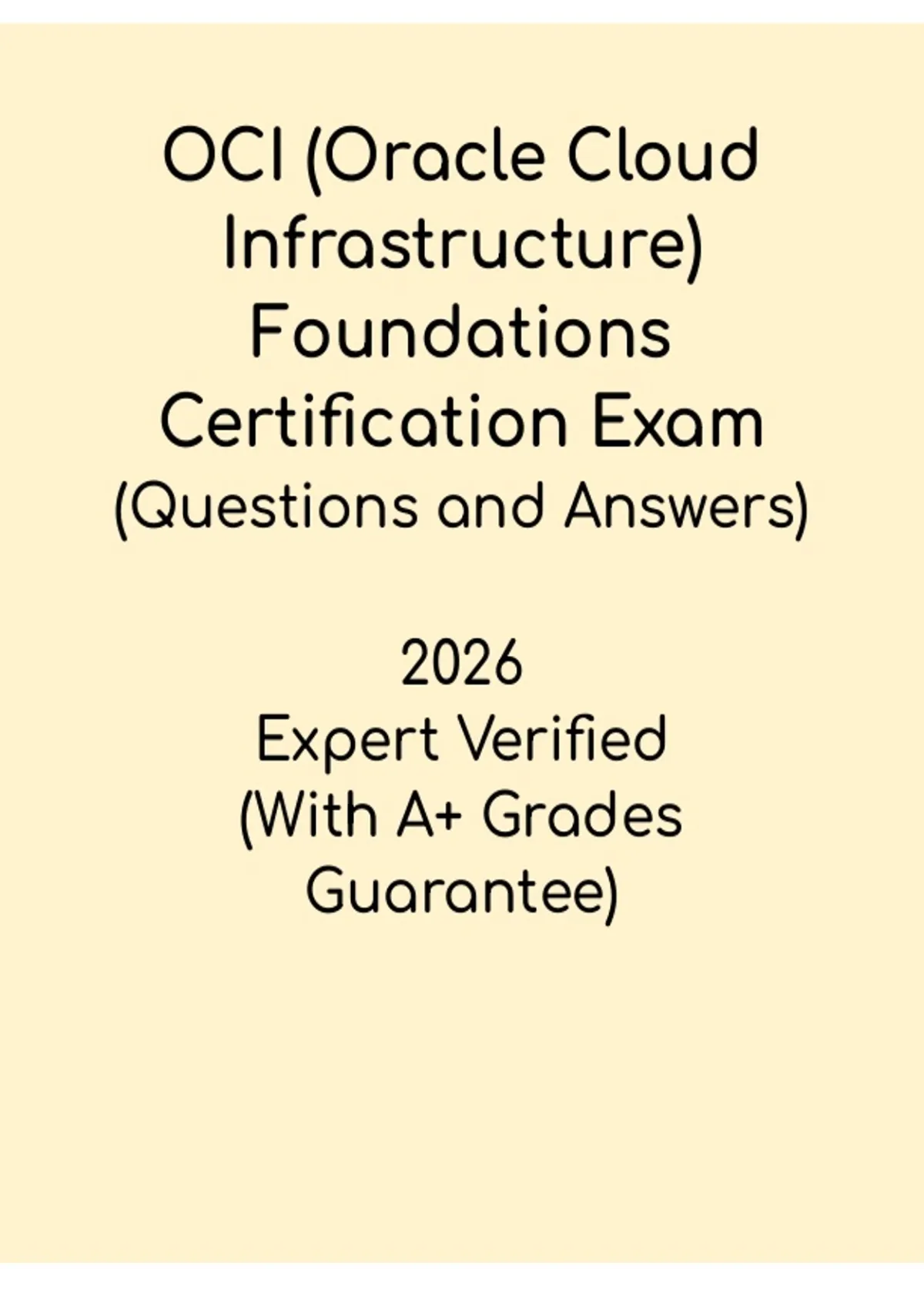 This OCI (Oracle Cloud Infrastructure) Foundations Certification Exam Study Guide PDF is a comprehensive and beginner-friendly resource designed to help candidates prepare effectively for the OCI Foundations exam, covering essential cloud concepts, OCI core services, compute, storage, networking, security, pricing, and governance, with clear explanations, structured summaries, and exam-focused insights that support efficient revision and build confidence for successfully passing the certification exam.