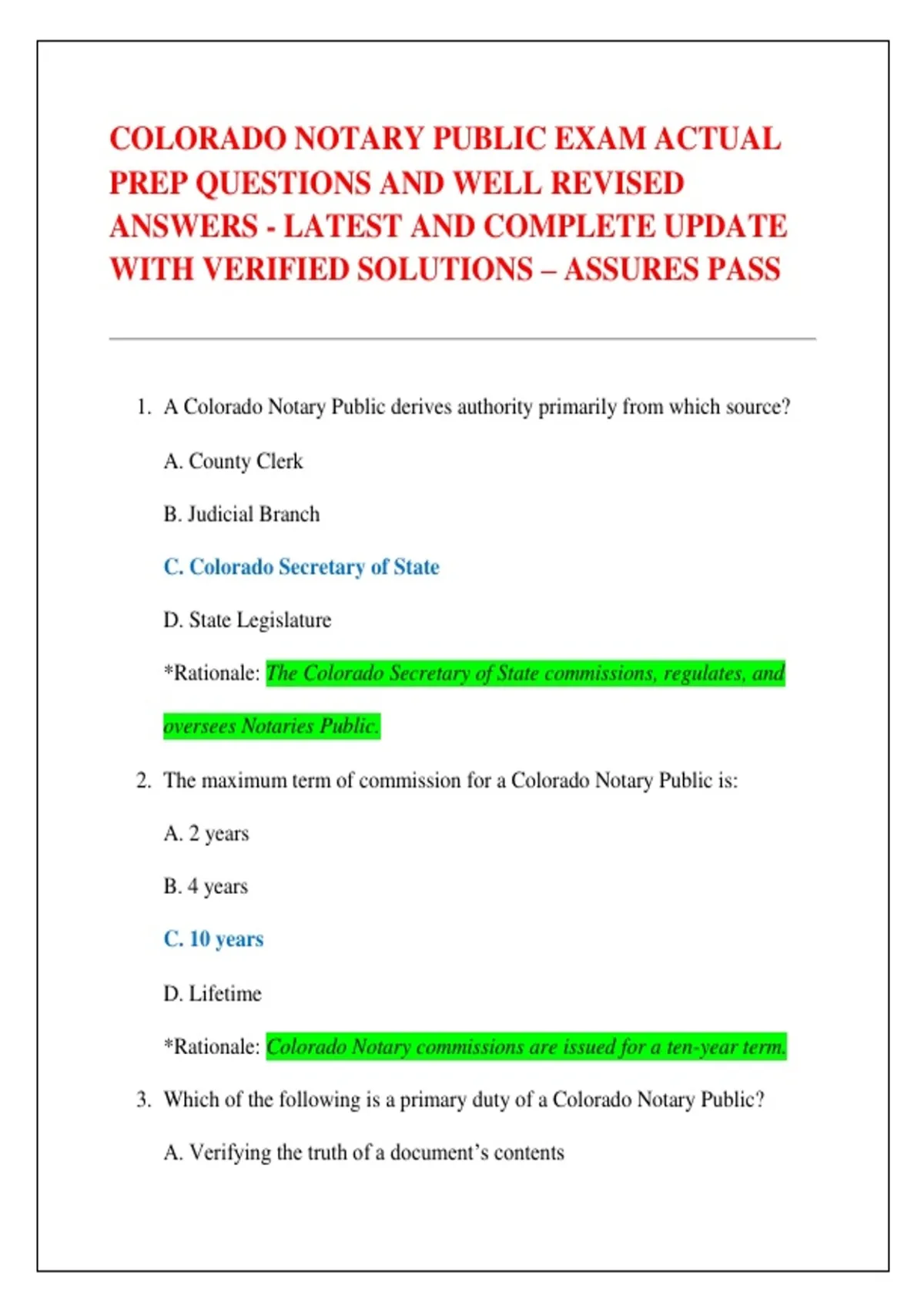 *Rationale: Colorado Notary commissions are issued for a ten-year term.
