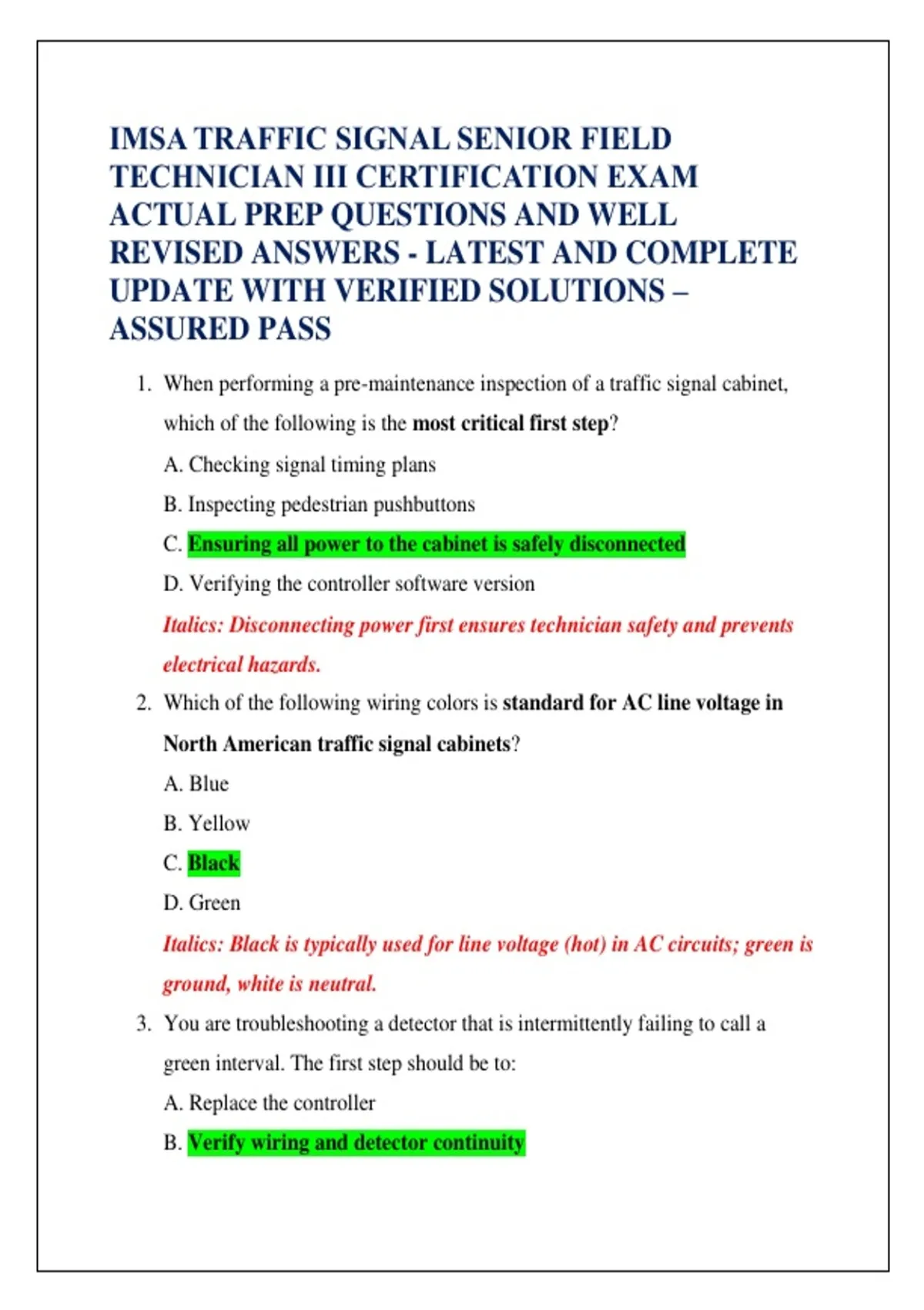 TECHNICIAN III CERTIFICATION EXAM