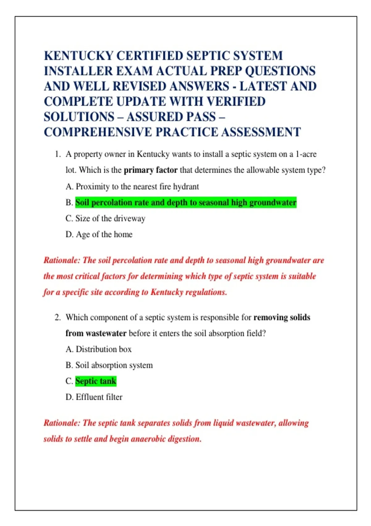 1. A property owner in Kentucky wants to install a septic system on a 1-acre