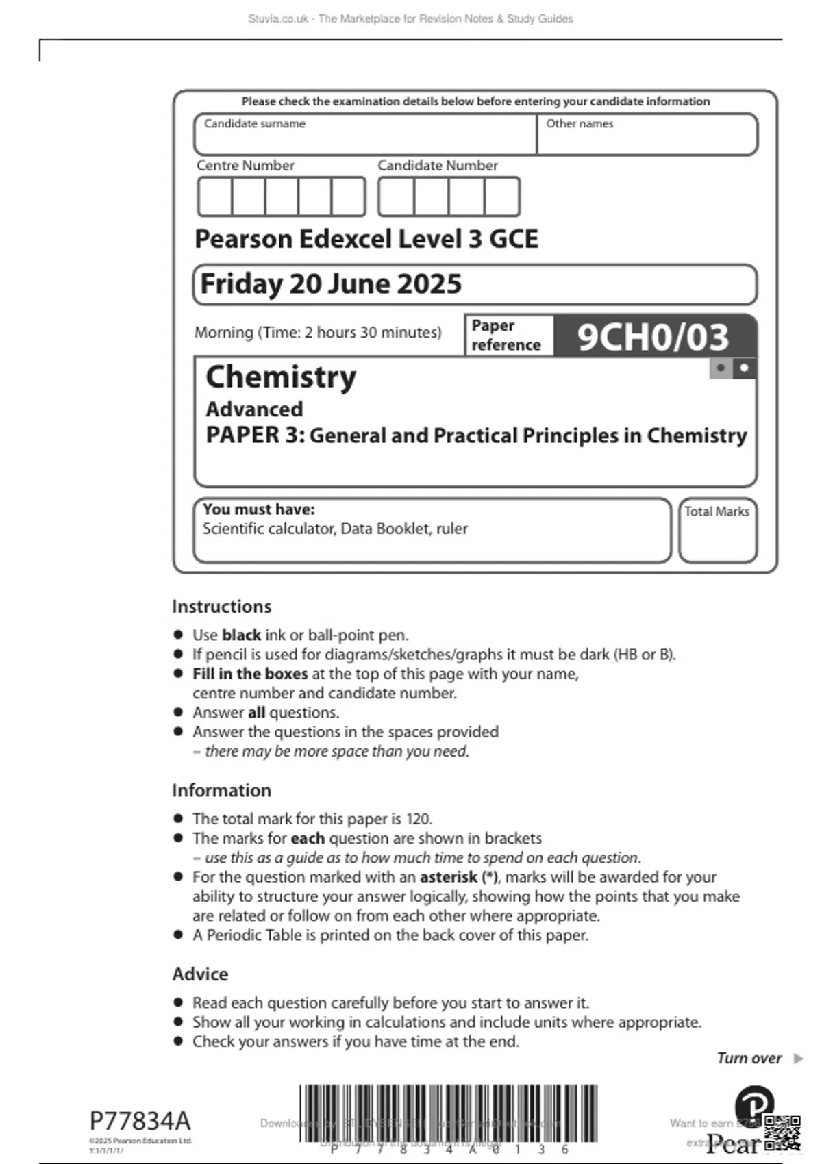 A-LEVEL EDEXCEL CHEMISTRY PAPER 3 June 2025 Question Paper (9CH0/03)