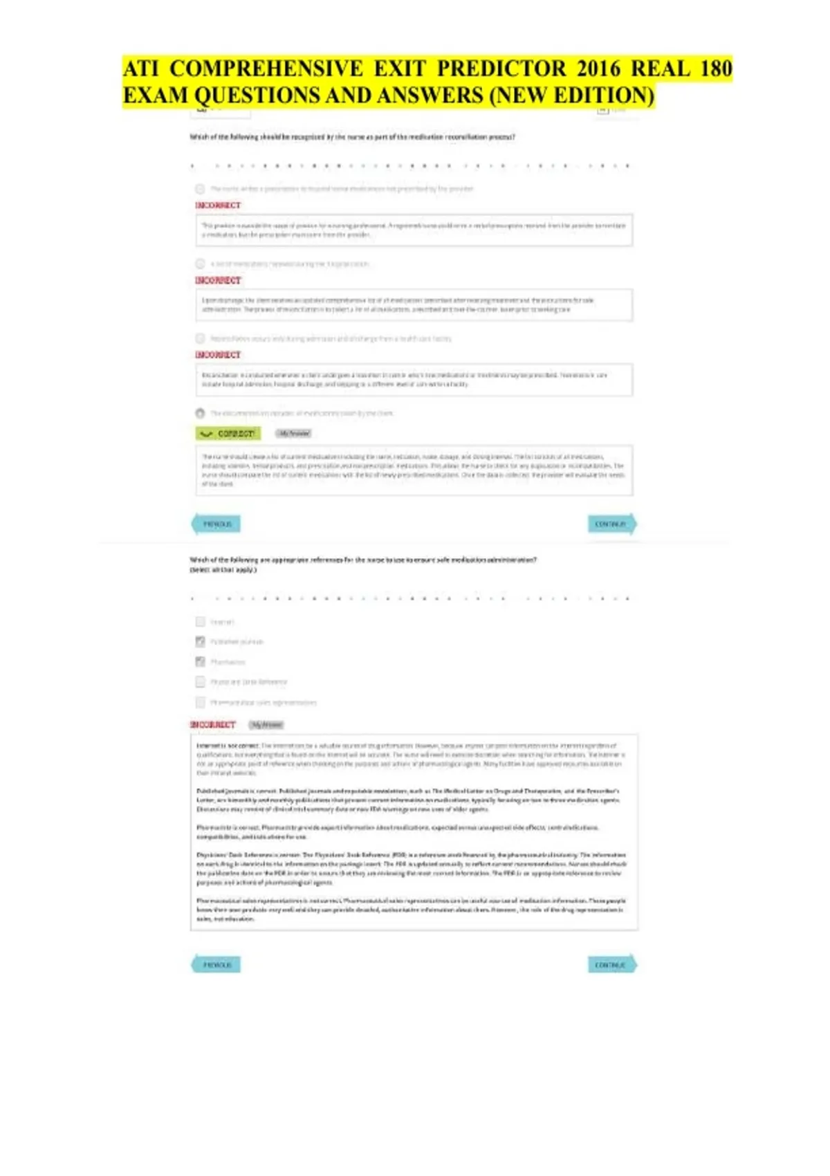 ,ATI COMPREHENSIVE EXIT PREDICTOR 2016 REAL 180