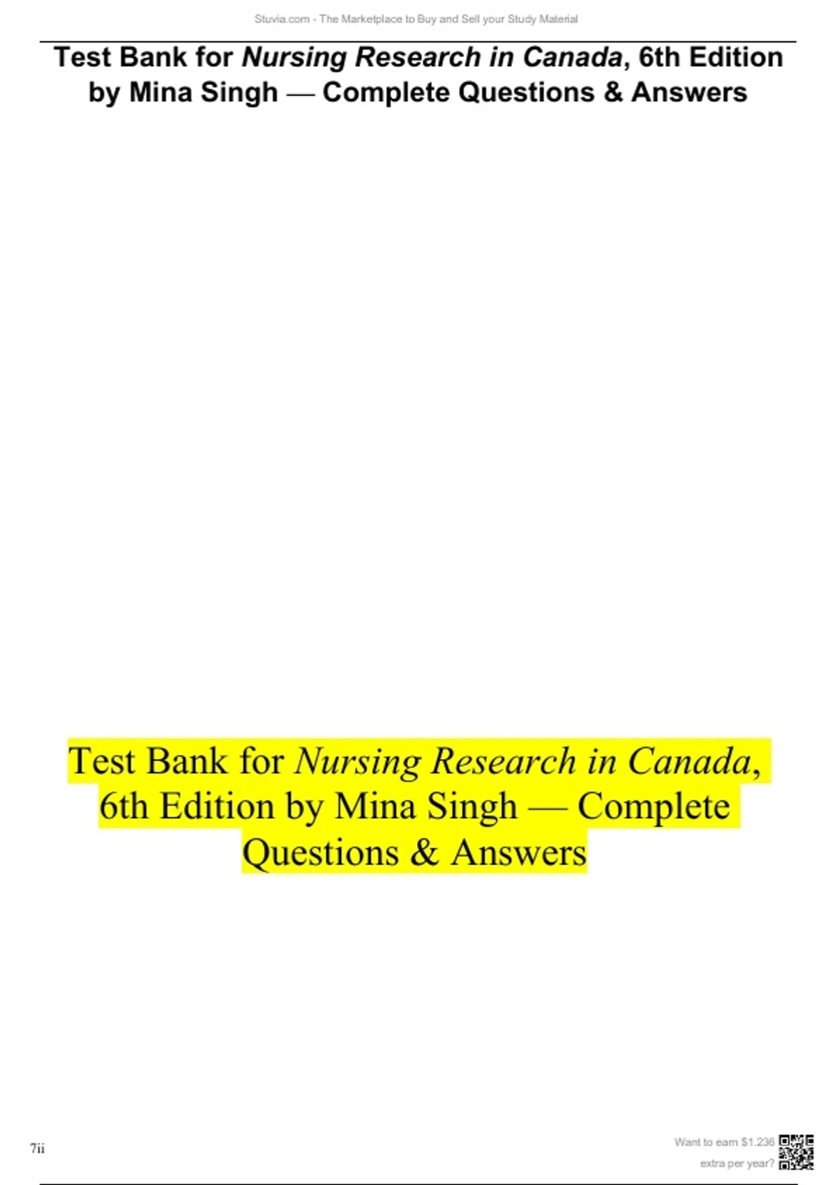 Test Bank for Nursing Research in Canada, 6th Edition by Mina Singh — Complete Questions & Answers