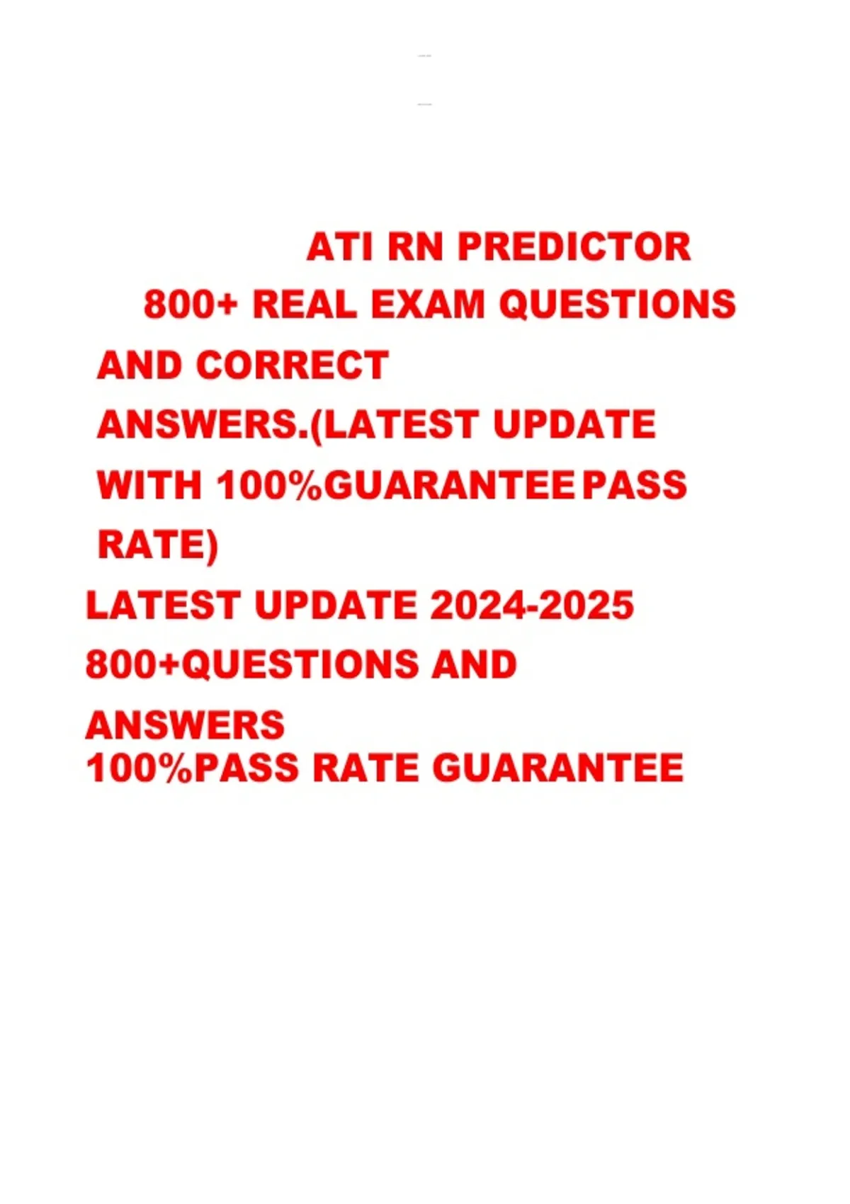 Access the ATI RN Predictor with 800+ real exam questions (2026/2027) with solution, including verified questions, complete answer key, and mark scheme. Enhance your nursing exam readiness and confidently achieve top results.
