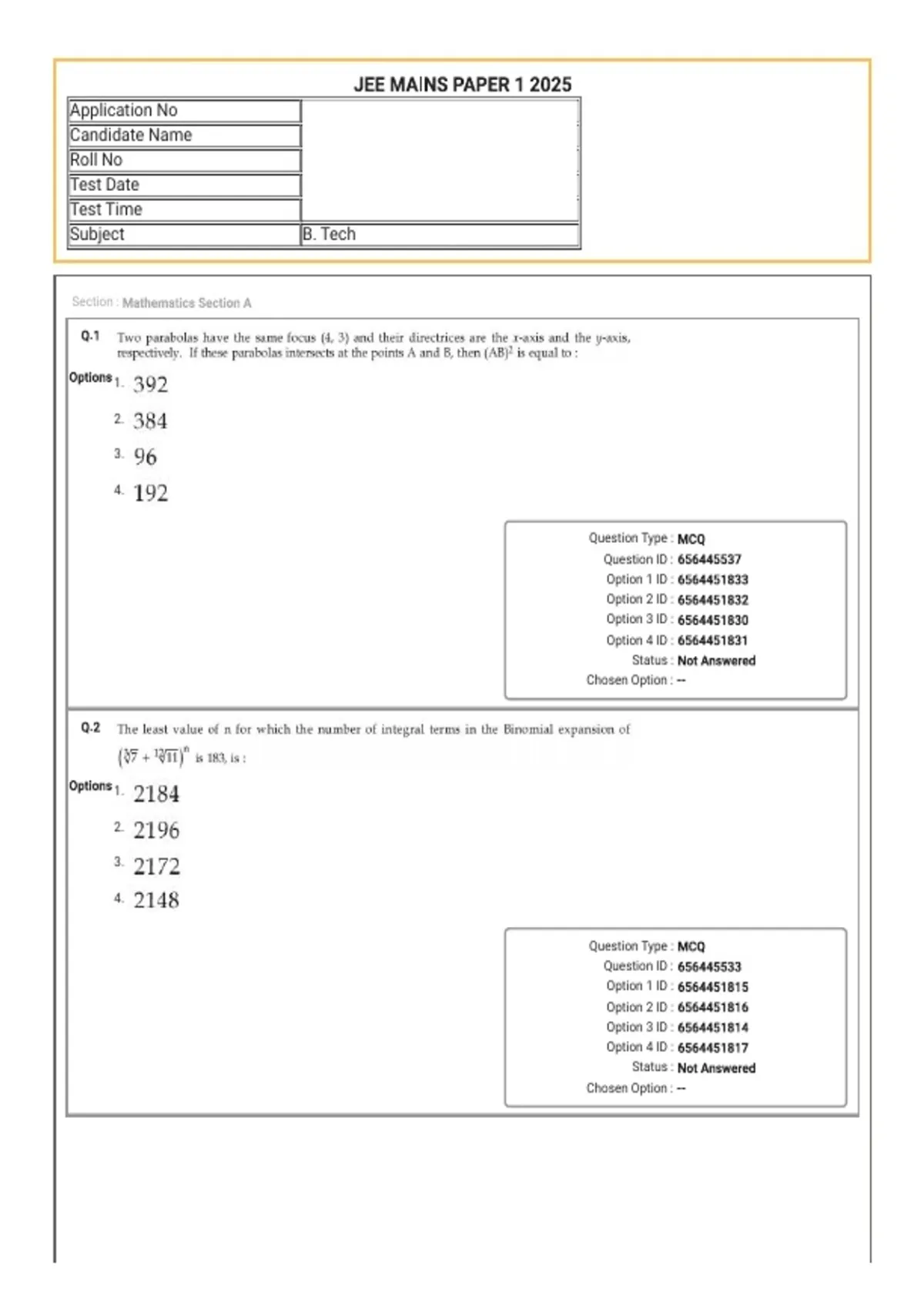Summary B-TECH JEE Mains Paper 1 2025 (2026/2027) | Questions and Answer Key | Mark Scheme | Fully Verified