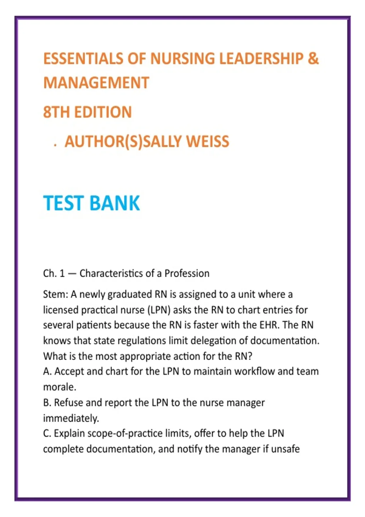 , Citation: Weiss, S. (2024). Essentials of Nursing Leadership &
