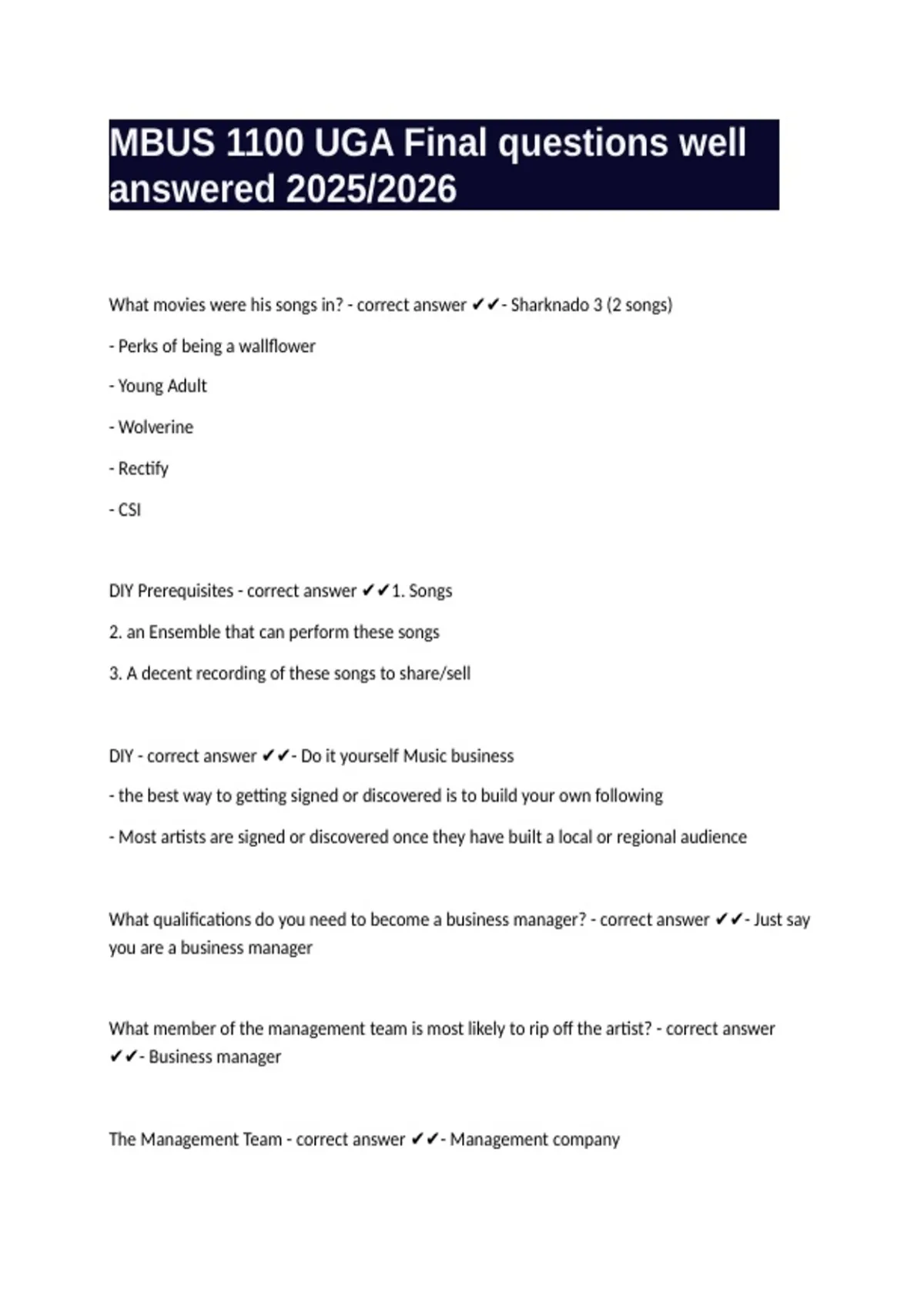 DIY Prerequisites - correct answer ✔✔1. Songs