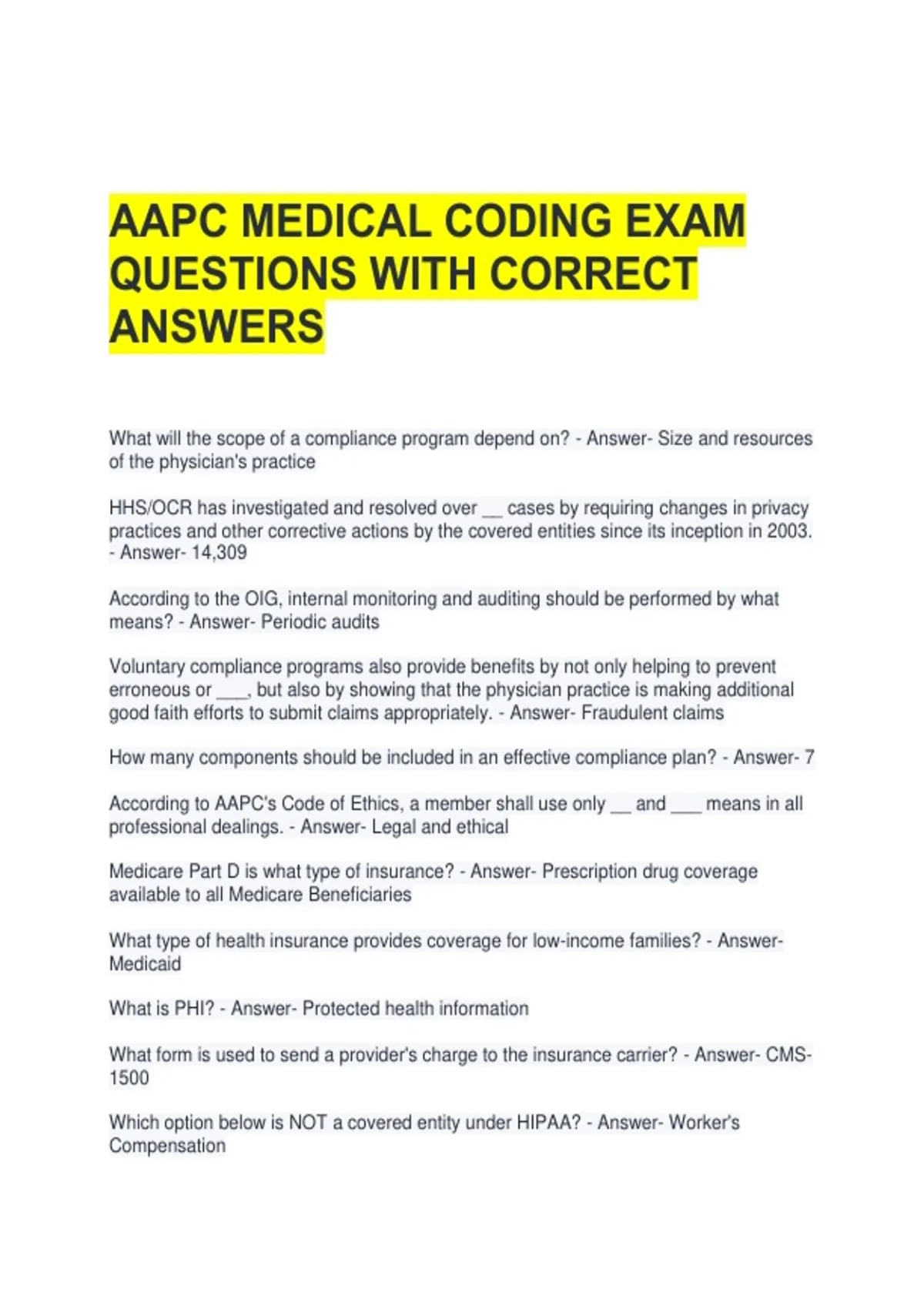 AAPC MEDICAL CODING EXAM QUESTIONS WITH CORRECT ANSWERS