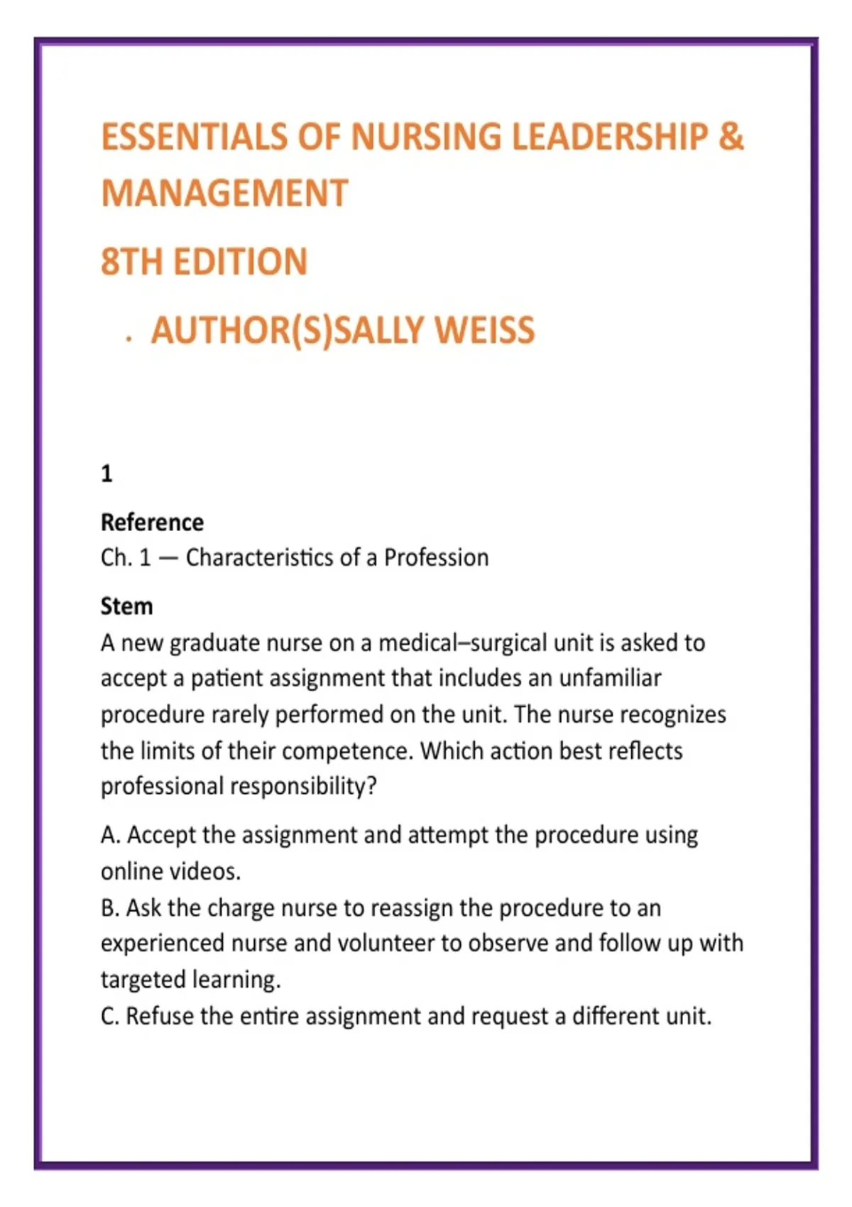 Weiss, S. (2024). Essentials of Nursing Leadership &