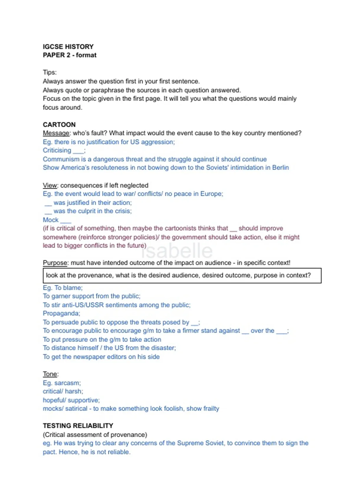 Assists students in preparing for IGCSE History Paper 2 by guiding them through the skills needed to analyse, interpret, and evaluate historical sources effectively.