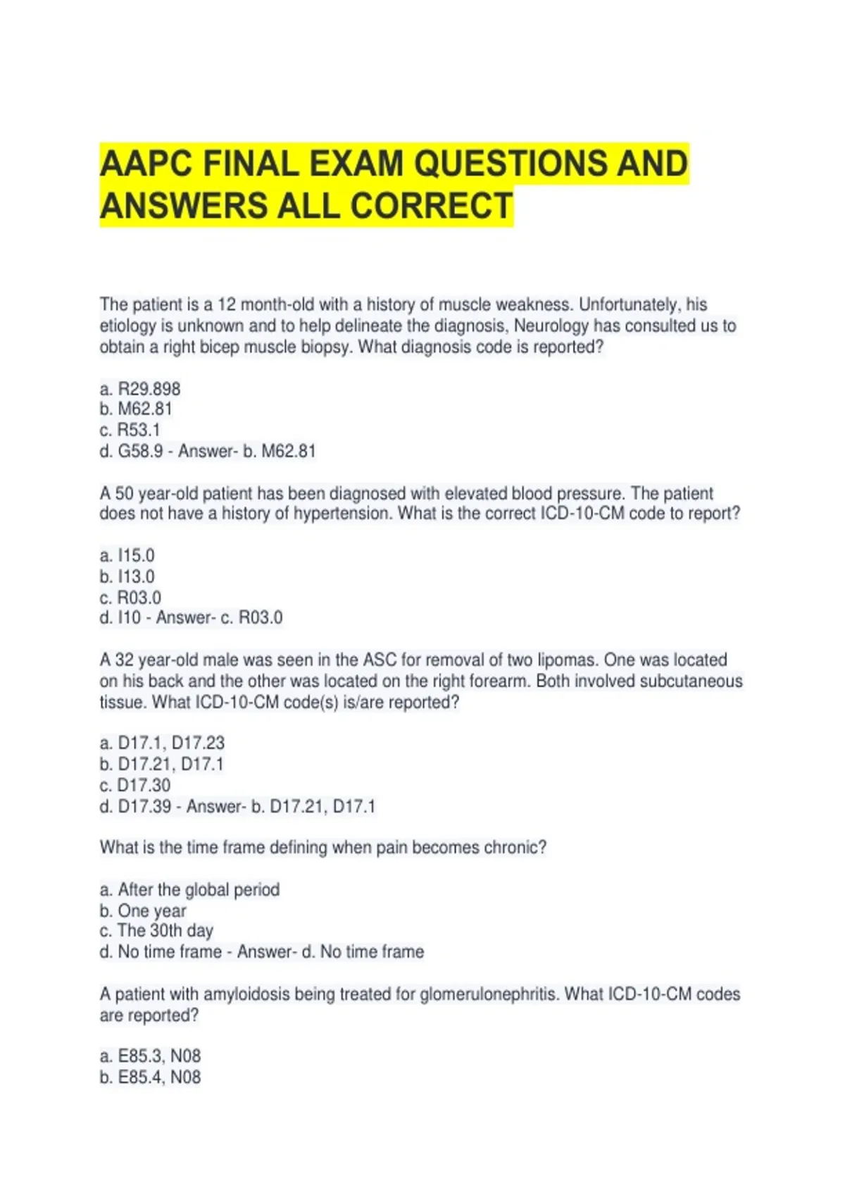 AAPC FINAL EXAM QUESTIONS AND ANSWERS ALL CORRECT