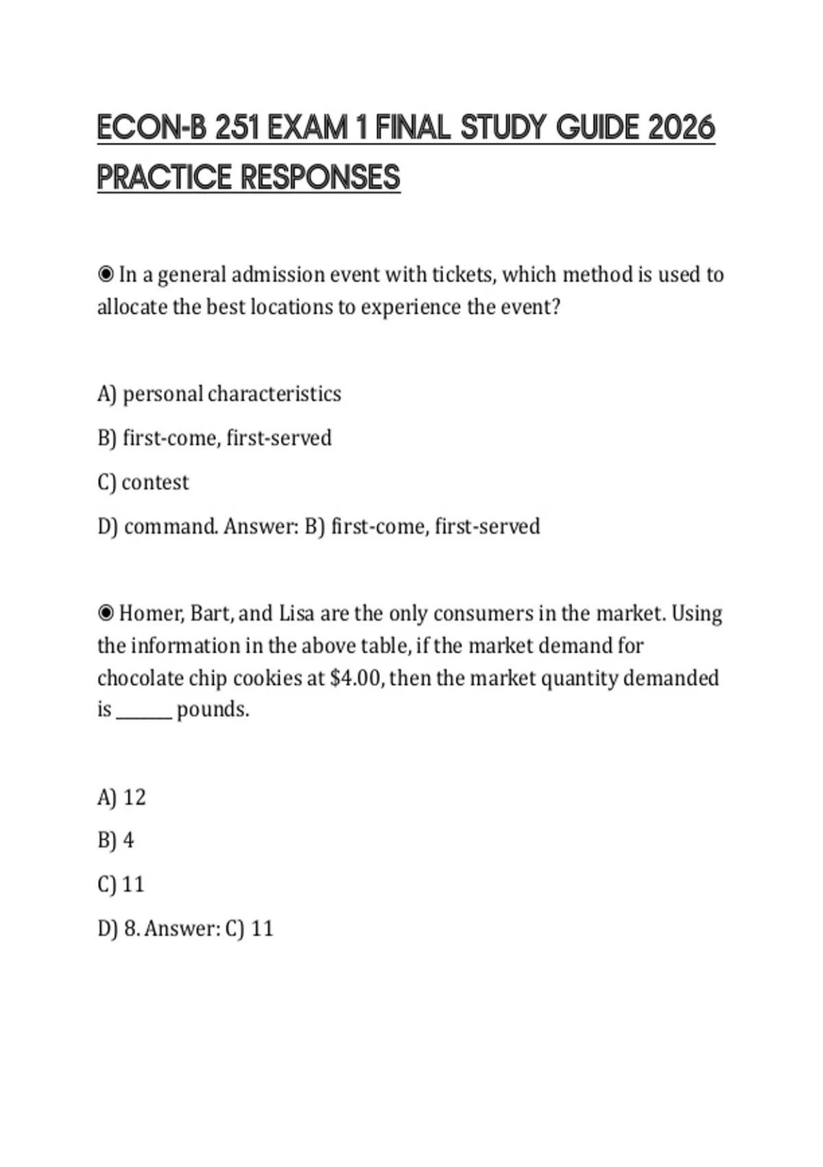 ECON-B 251 EXAM 1 FINAL STUDY GUIDE 2026 PRACTICE RESPONSES