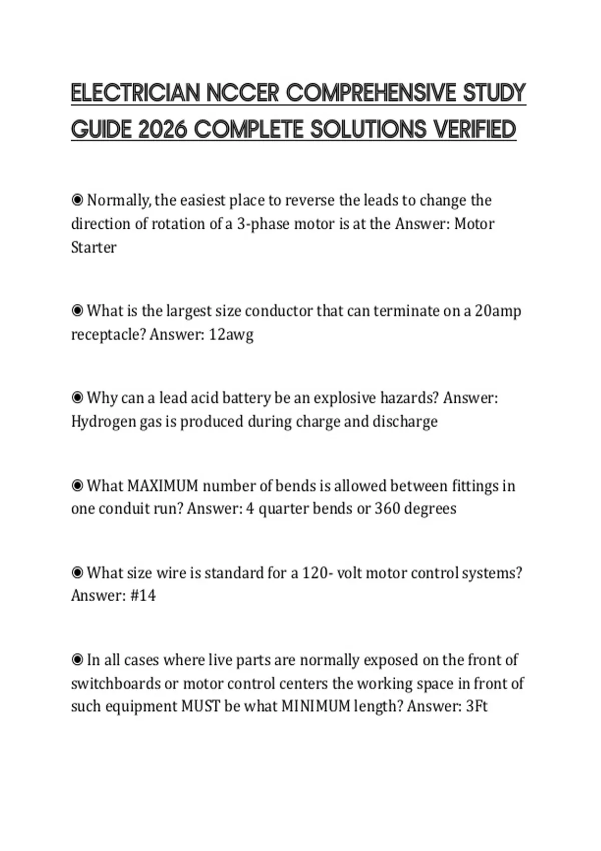 ELECTRICIAN NCCER COMPREHENSIVE STUDY GUIDE 2026 COMPLETE SOLUTIONS VERIFIED
