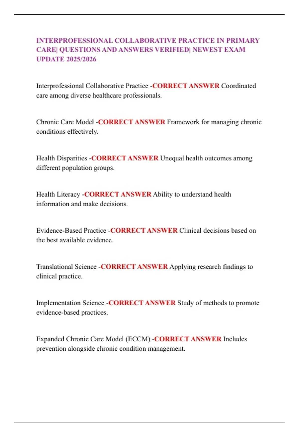 INTERPROFESSIONAL COLLABORATIVE PRACTICE IN PRIMARY CARE| QUESTIONS AND ANSWERS VERIFIED| NEWEST EXAM UPDATE 2025/2026