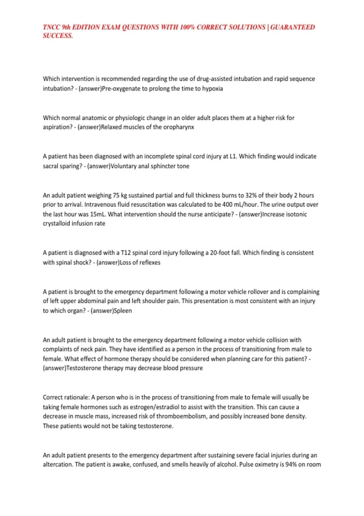 , TNCC 9th EDITION EXAM QUESTIONS WITH 100% CORRECT SOLUTIONS | GUARANTEED