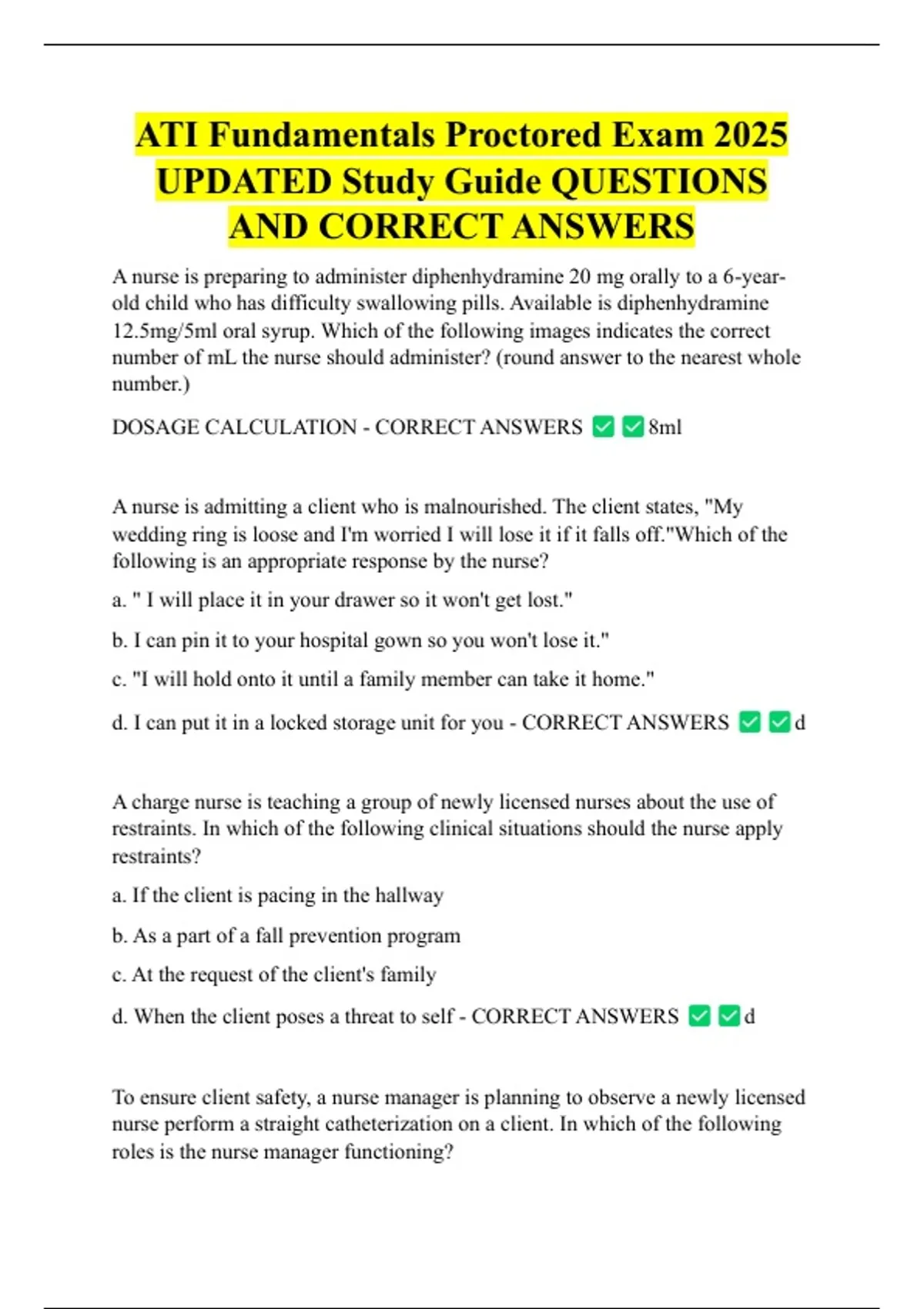 CORRECT ANSWERS d