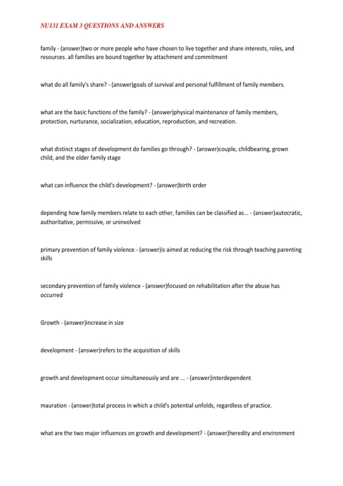 NU131 EXAM 3 QUESTIONS AND ANSWERS