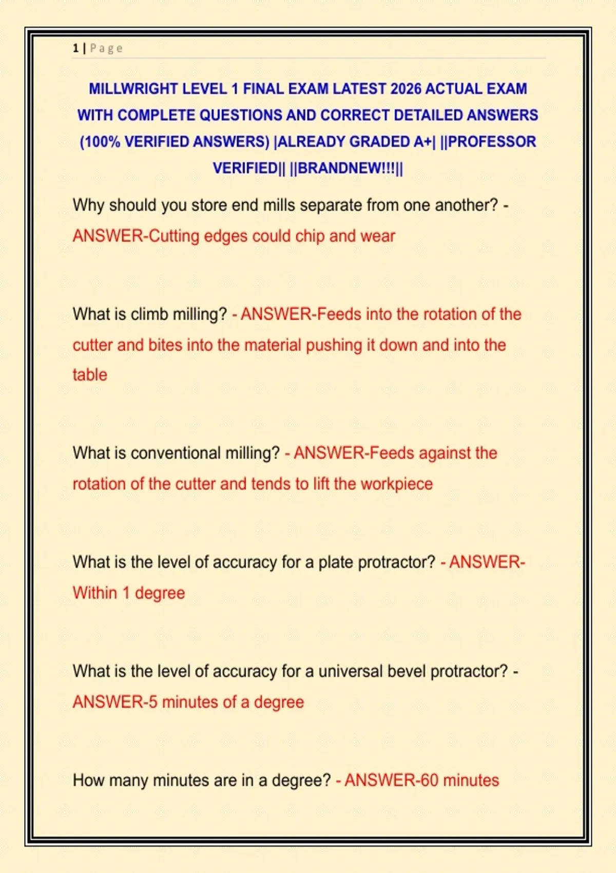 MILLWRIGHT LEVEL 1 FINAL EXAM LATEST 2026 ACTUAL EXAM WITH COMPLETE QUESTIONS AND CORRECT DETAILED ANSWERS (100% VERIFIED ANSWERS) |ALREADY GRADED A+| ||PROFESSOR VERIFIED|| ||BRANDNEW!!!||