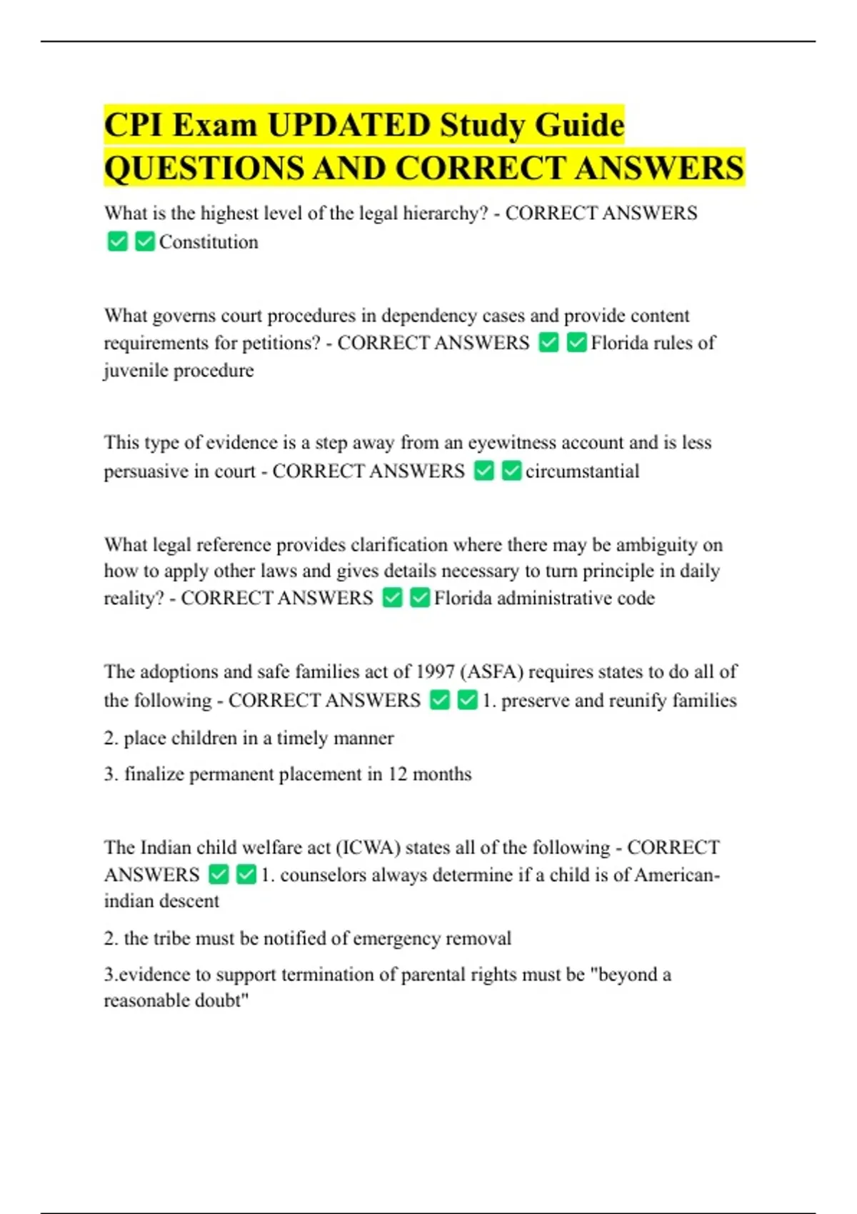 CPI Exam UPDATED Study Guide