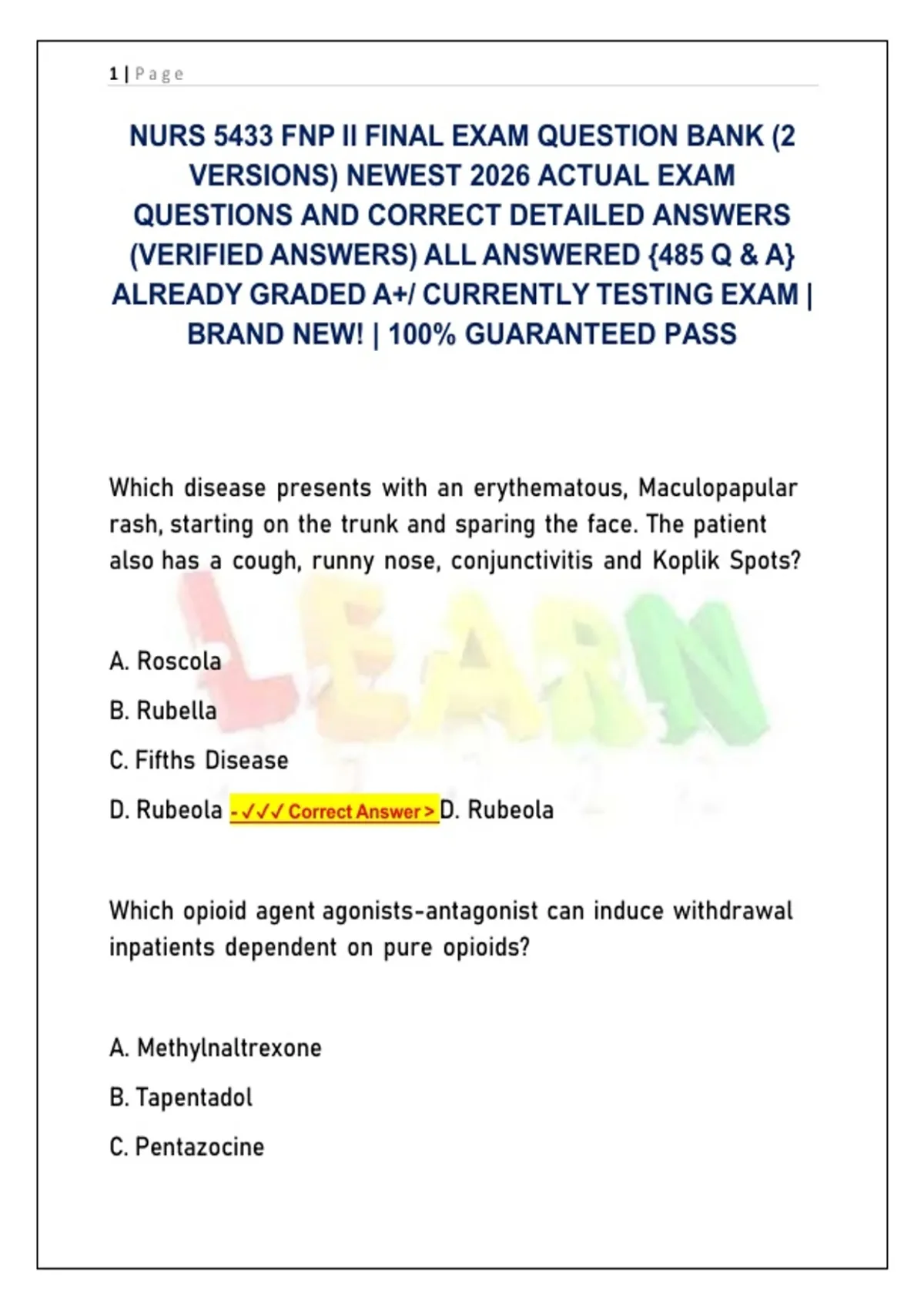 D. Rubeola - ✔✔✔ Correct Answer > D. Rubeola