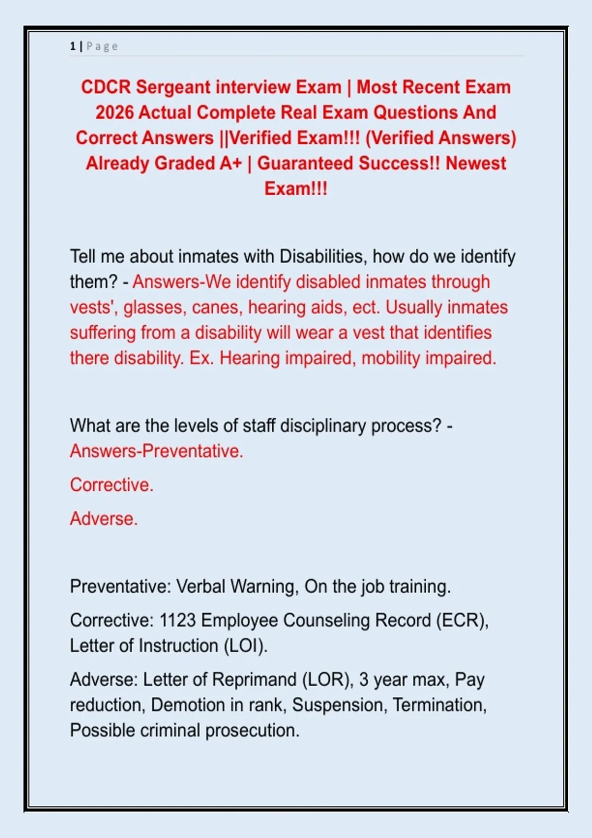 CDCR Sergeant interview Exam | Most Recent Exam