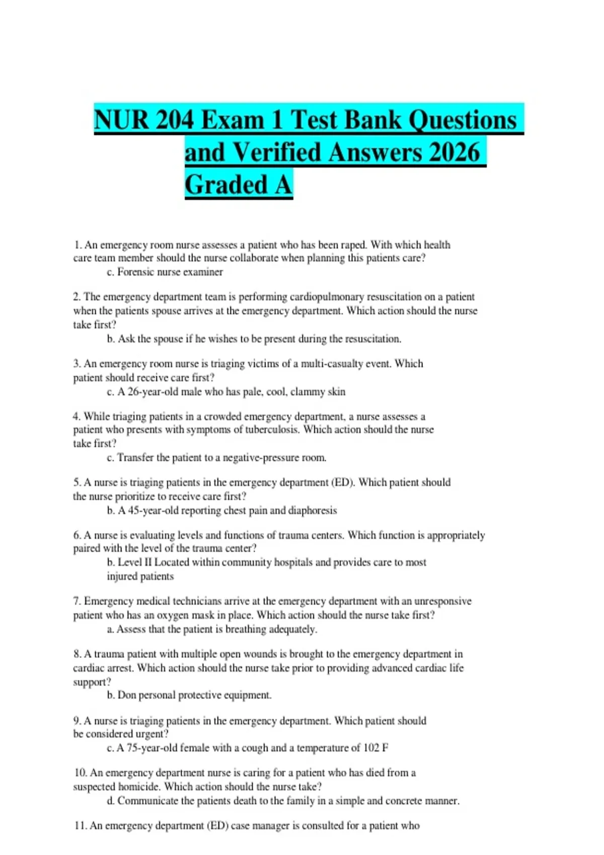 10. An emergency department nurse is caring for a patient who has died from a