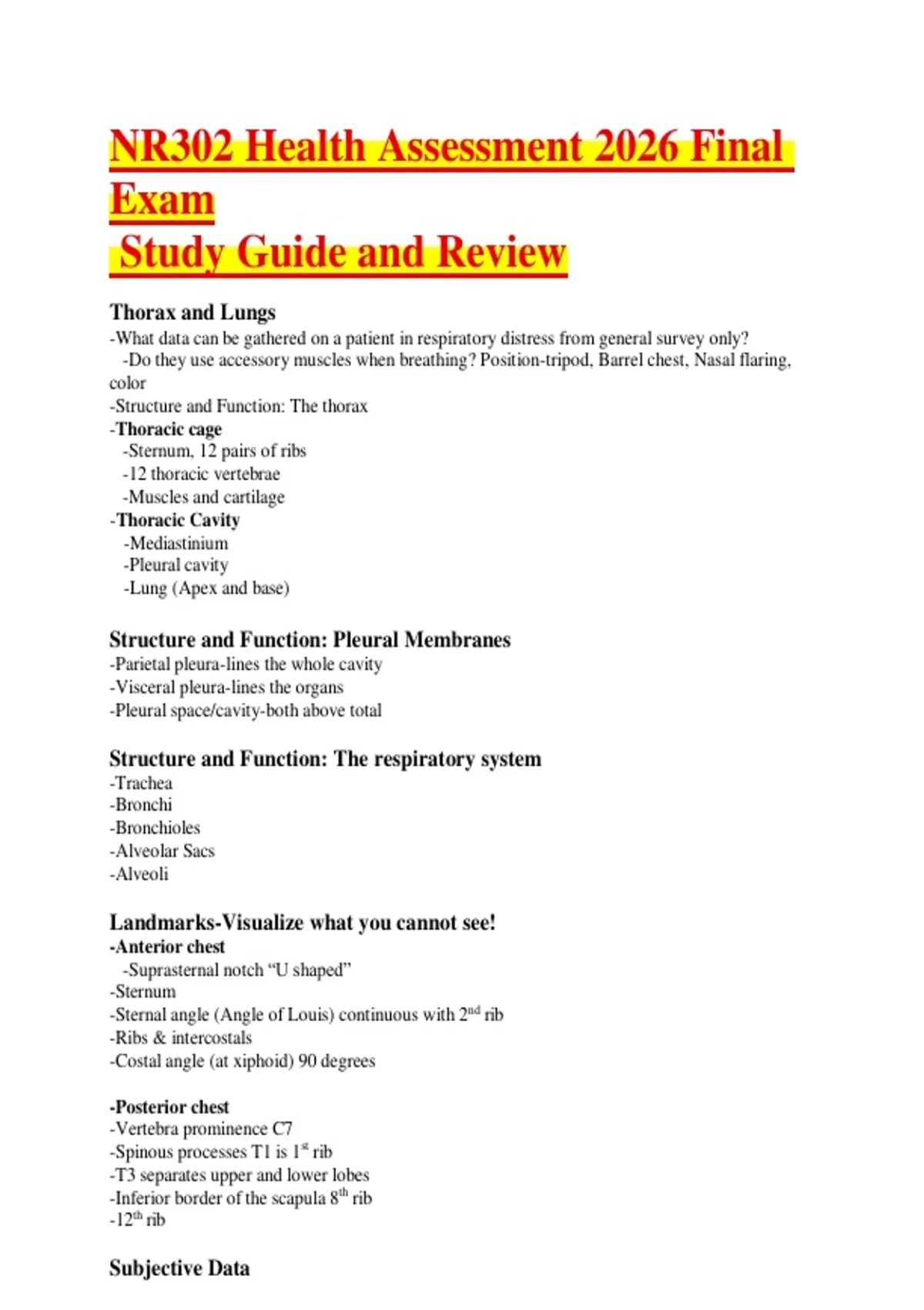 NR302 Health Assessment 2026 Final Exam Study Guide and Review NR302 Health Assessment 2026 Final Exam Study Guide and Review