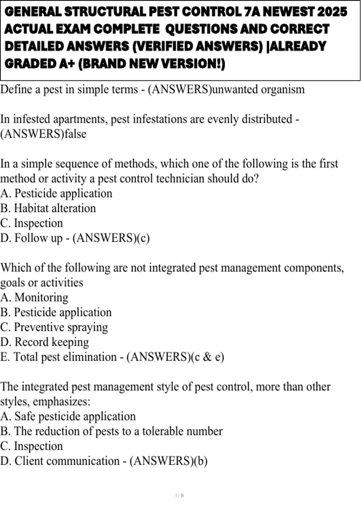E. Total pest elimination - (ANSWERS)(c & e)