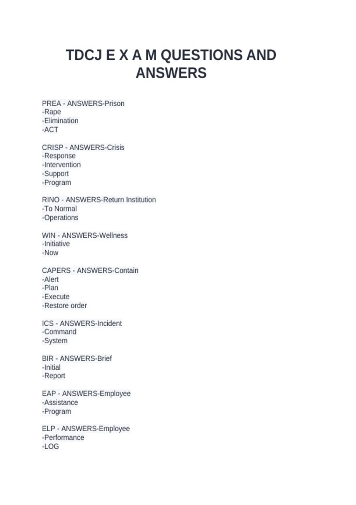 TDCJ E X A M QUESTIONS AND ANSWERS