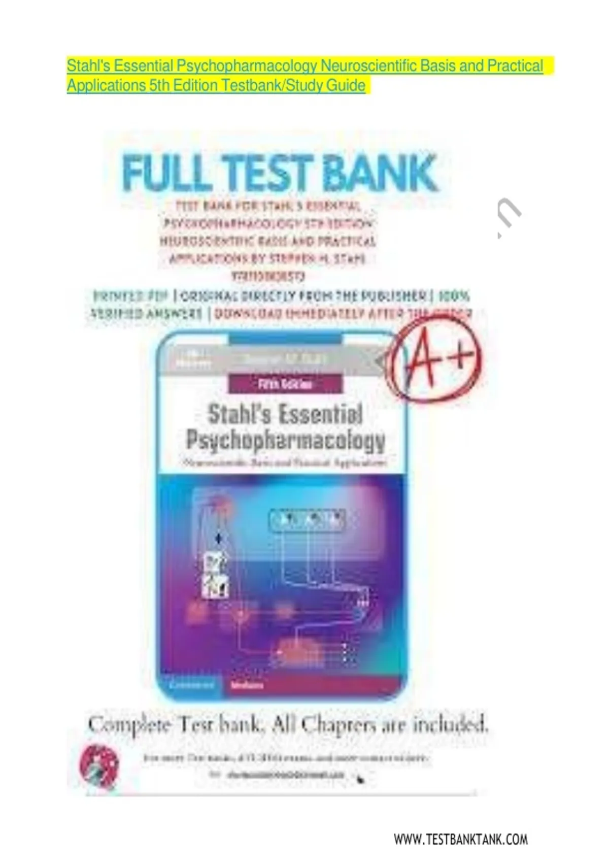 Stahl’s Essential Psychopharmacology – Neuroscientific Basis and Practical Applications (5th Edition), Comprehensive Test Bank and Study Guide