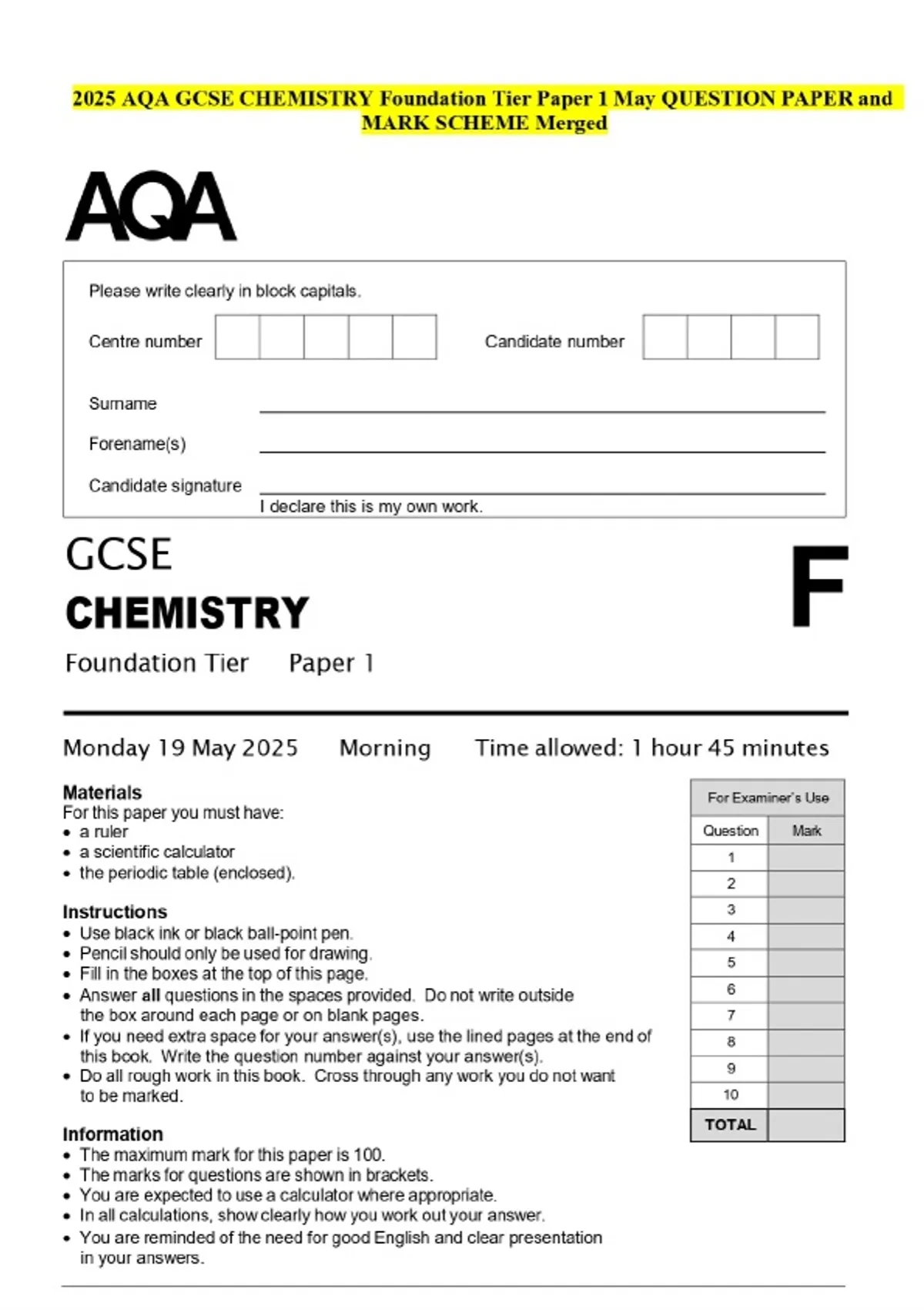 2025 AQA GCSE CHEMISTRY Foundation Tier Paper 1 May QUESTION PAPER and MARK SCHEME Merged
