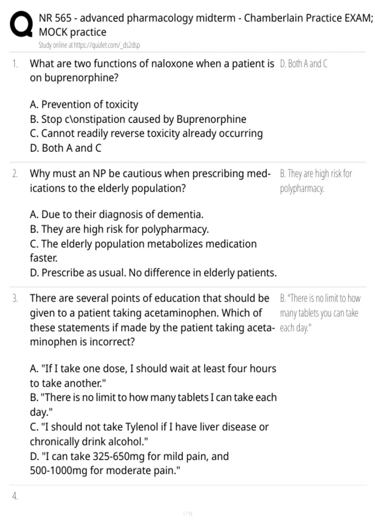 , NR 565 - advanced pharmacology midterm - Chamberlain Practice EXAM;