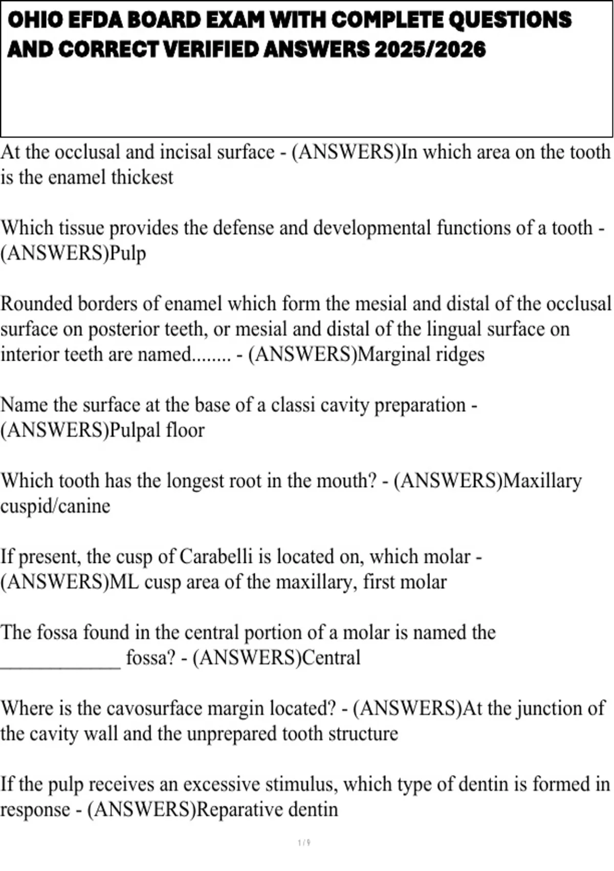 OHIO EFDA BOARD EXAM WITH COMPLETE QUESTIONS