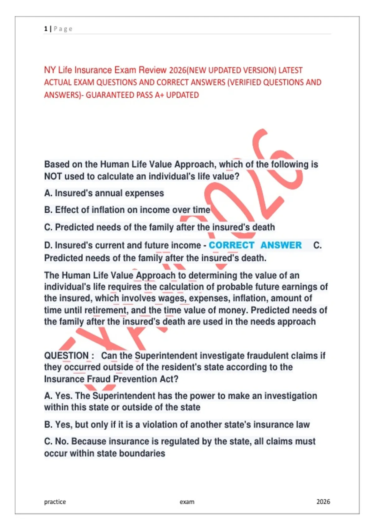 NY Life Insurance Exam Review 2026(NEW UPDATED VERSION) LATEST