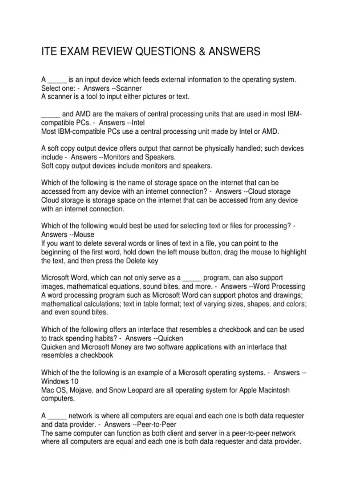 ITE EXAM REVIEW QUESTIONS & ANSWERS