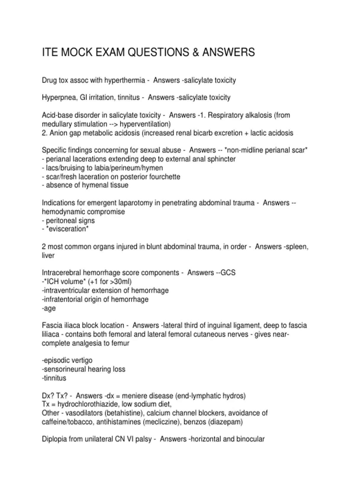 ITE MOCK EXAM QUESTIONS & ANSWERS