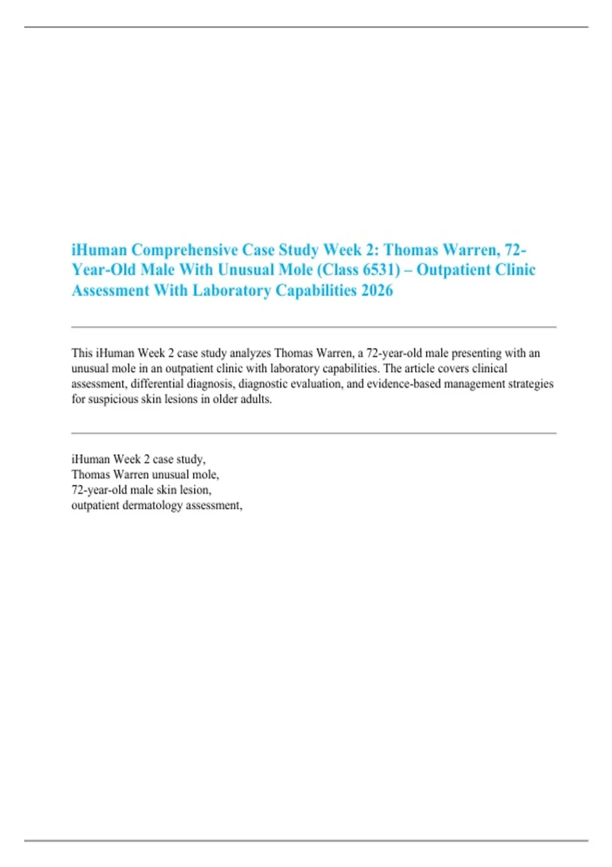 This iHuman Week 2 case study analyzes Thomas Warren, a 72-year-old male presenting with an