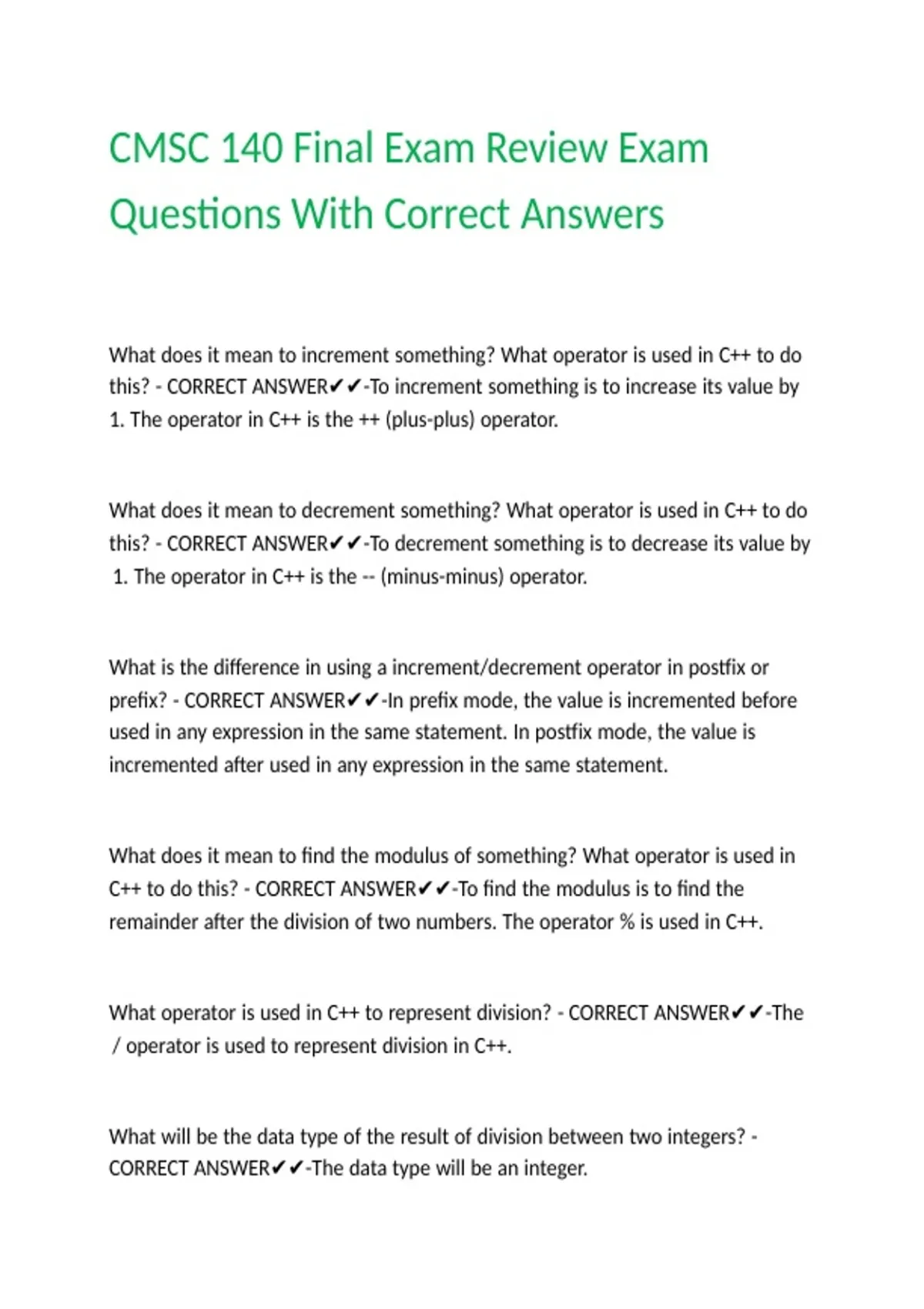 this? - CORRECT ANSWER✔✔-To decrement something is to decrease its value by