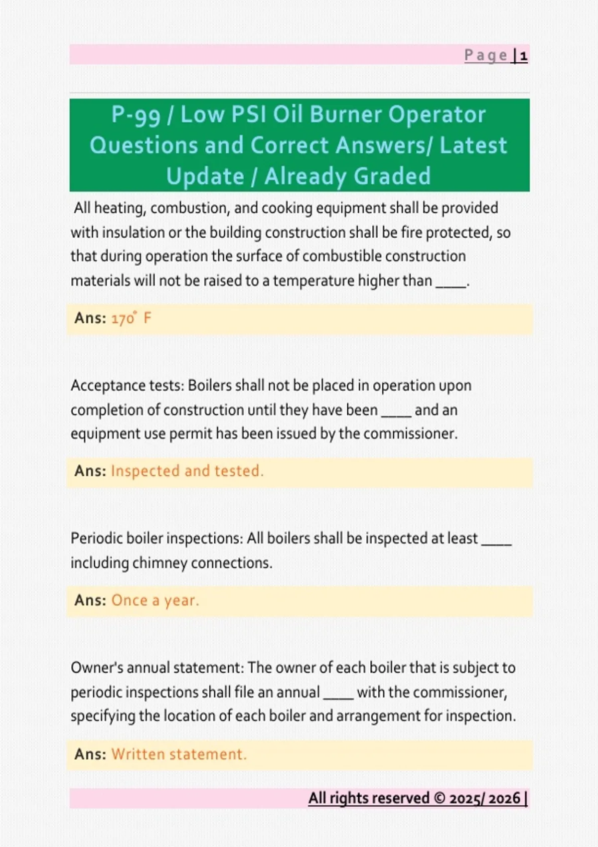P-99 / Low PSI Oil Burner Operator