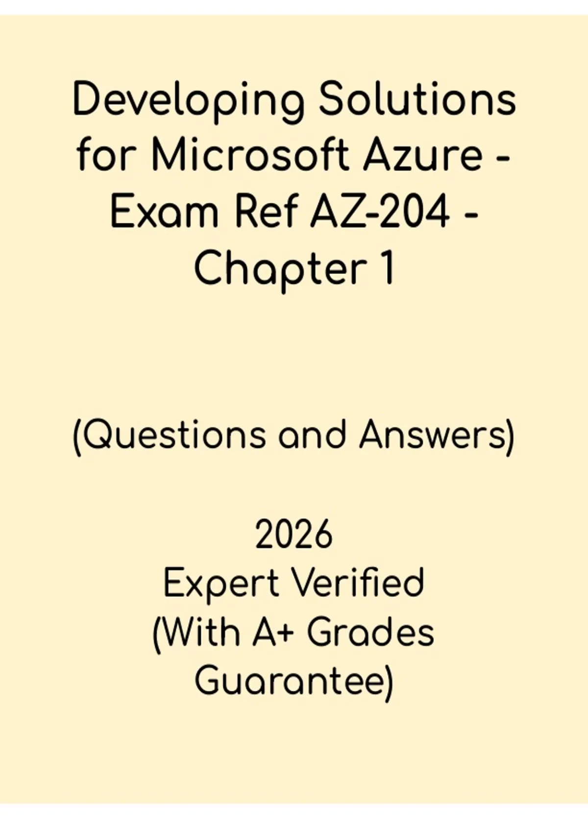 This AZ-204 Chapter 1 PDF on Developing Solutions for Microsoft Azure is an exam-focused study resource designed to help candidates prepare for the Microsoft Azure Developer certification, covering core topics such as cloud concepts, app services, storage, and foundational development practices, with clear explanations, structured summaries, and practice questions to support effective revision, strengthen understanding, and boost confidence for passing the AZ-204 exam.