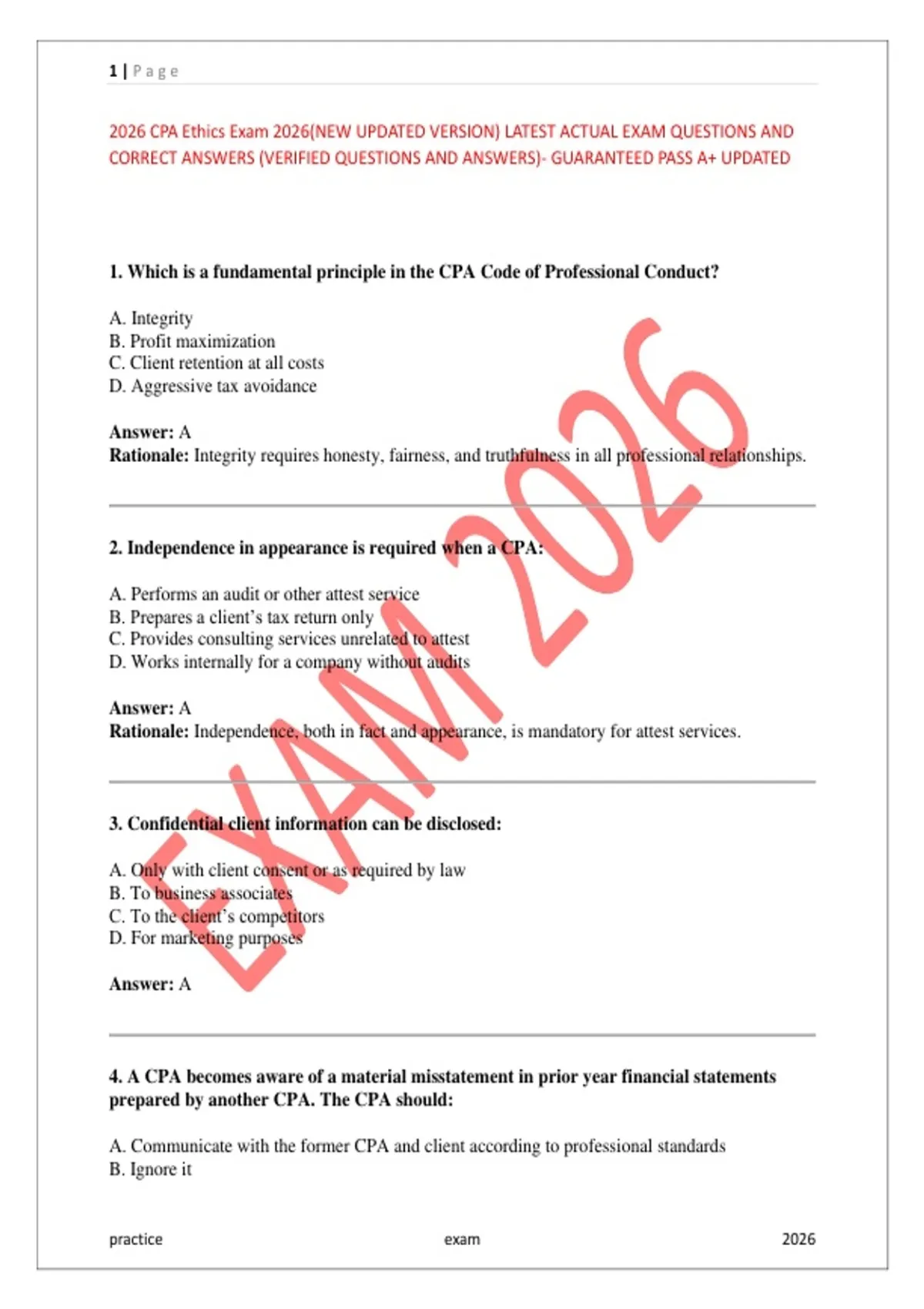 2026 CPA Ethics Exam 2026(NEW UPDATED VERSION) LATEST ACTUAL EXAM QUESTIONS AND