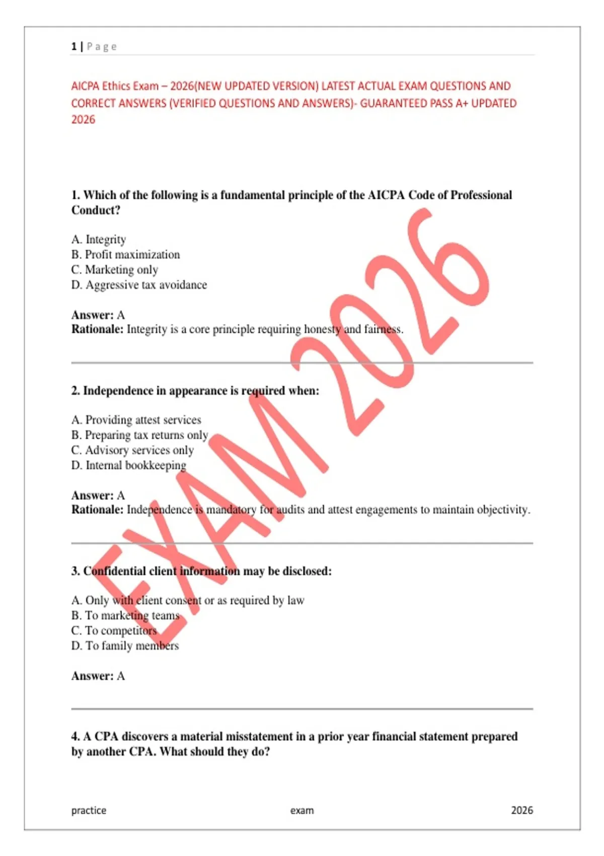 AICPA Ethics Exam – 2026(NEW UPDATED VERSION) LATEST ACTUAL EXAM QUESTIONS AND