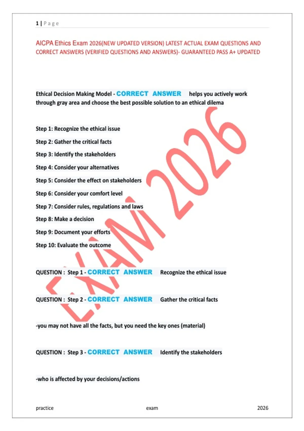 AICPA Ethics Exam 2026(NEW UPDATED VERSION) LATEST ACTUAL EXAM QUESTIONS AND