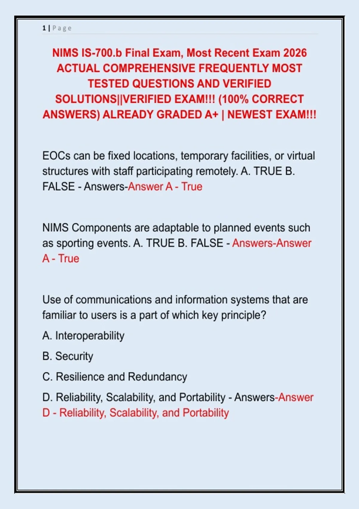 NIMS IS-700.b Final Exam, Most Recent Exam 2026