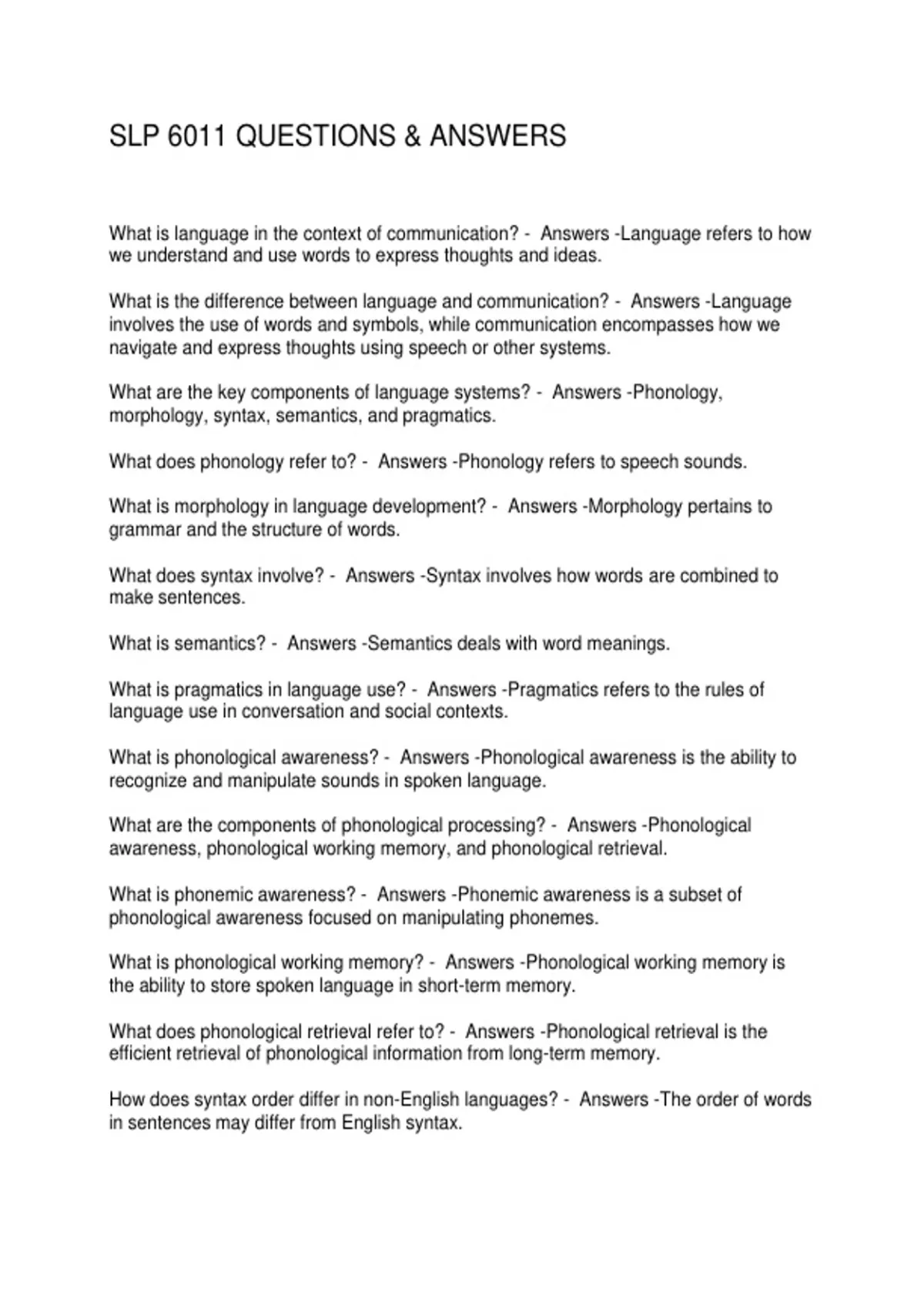 SLP 6011 QUESTIONS & ANSWERS