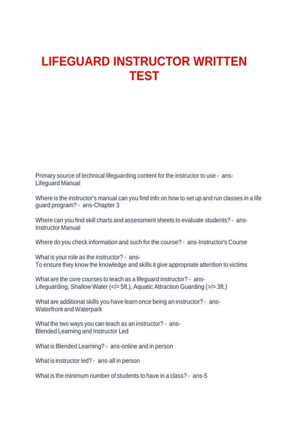 LIFEGUARD INSTRUCTOR WRITTEN