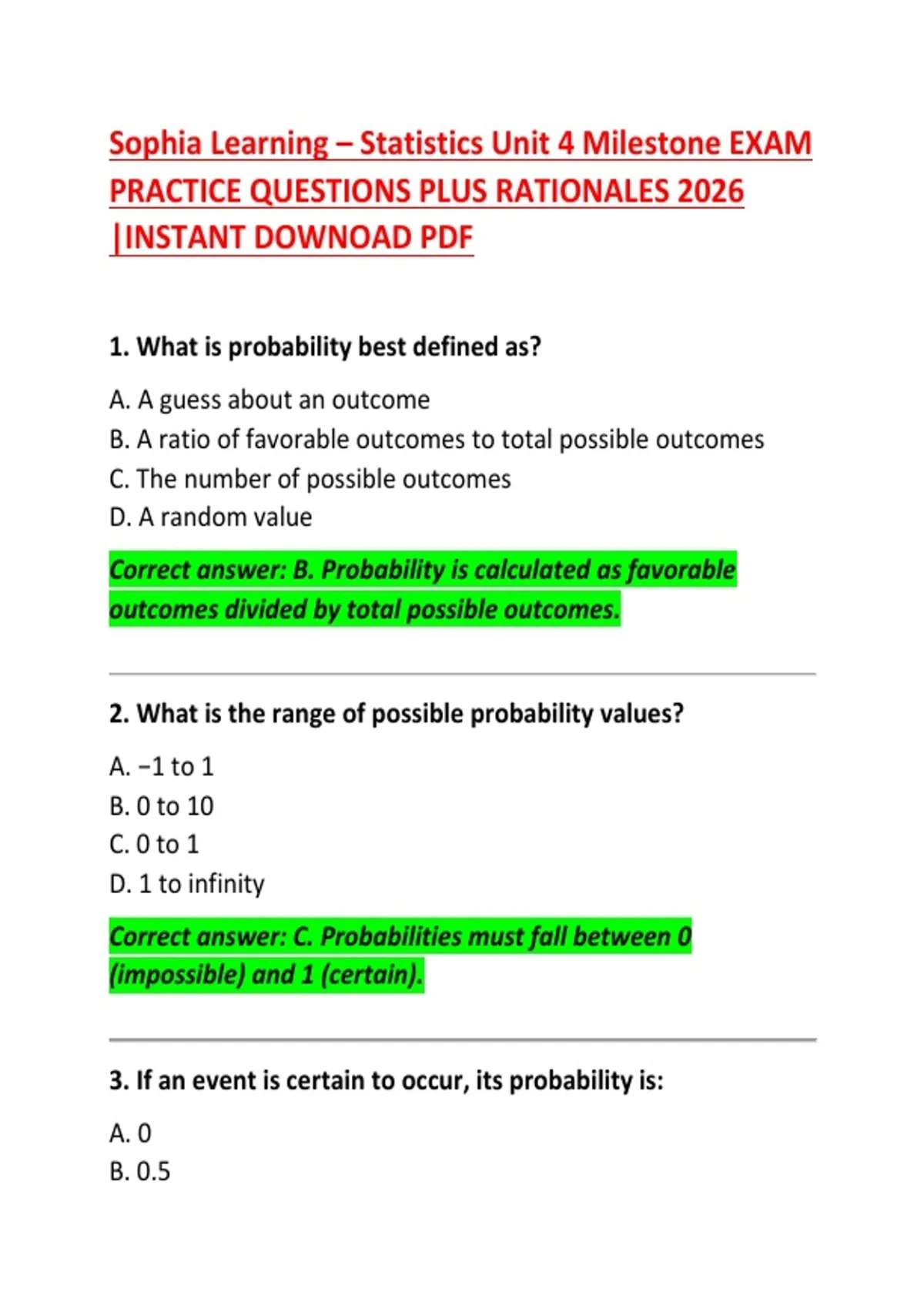3. If an event is certain to occur, its probability is: